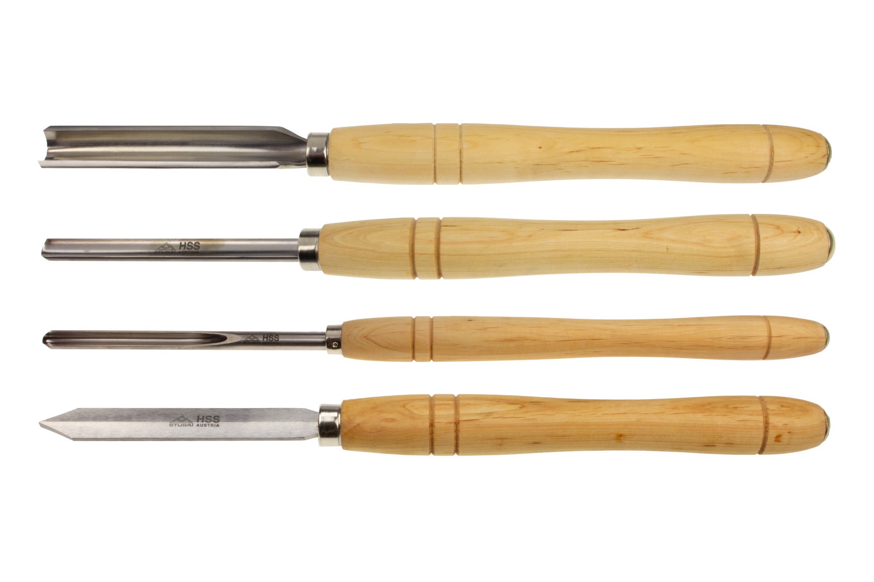 STUBAI Drechselset 4-tlg. – hochwertiges Drechselwerkzeug aus Erle – HSS Abstecher, Schruppröhre, Formröhre, Schüsselröhre – einzeln verpackt für professionelle Drechsler