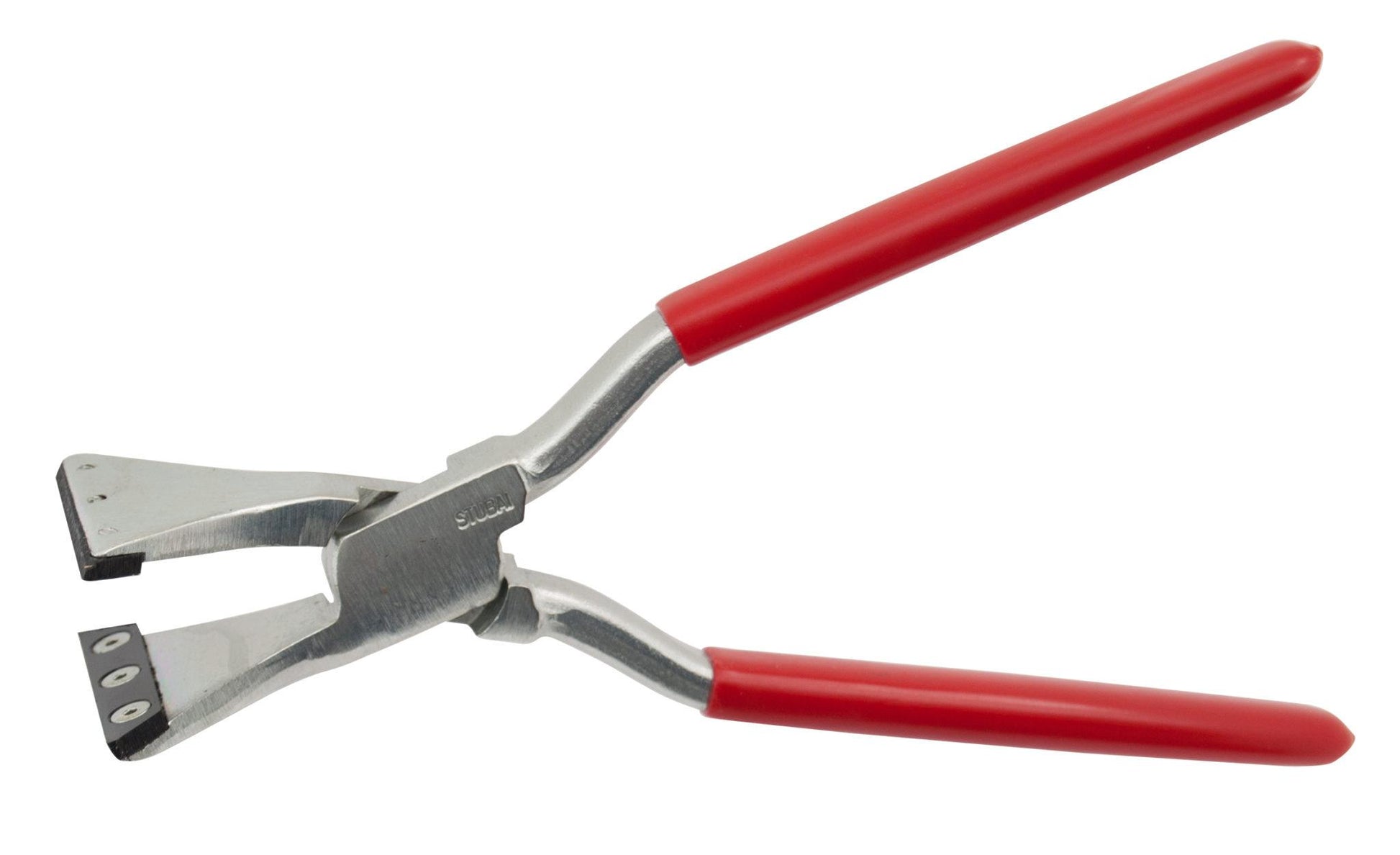 Hochwertige STUBAI Spezialfalzzange made in Österreich. In dieser geraden Ausführung in Nirolook besitzt die Falzzange ein eingelegtes Gewerbe, welches sich durch eine extra lange Haltbarkeit auszeichnet. Vorteile sind außerdem die optimale Gängigkeit und der Führungslagerring, welcher im Gewerbe eingebaut ist. Die Falzzange ist mit auswechselbaren Kunststoffeinlagen ausgestattet und damit speziell zur oberflächenschonenden Bearbeitung von beschichteten Blechen und Materialien geeignet. Die Schenkel sind mit rotem Kunststoff beschichtet. Der Werkstoff ist C45 Kohlenstoffstahl.
