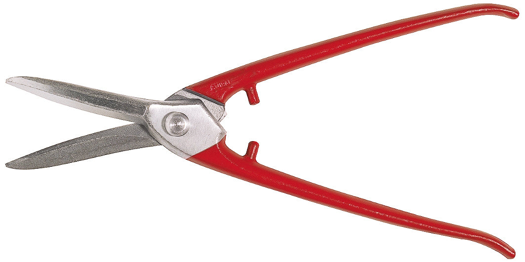 Blechschere für exakte Kurvenschnitte, Kopf poliert, Schneiden induktiv gehärtet, Härte: 58-60 HRC, Werkstoff: C60 Kohlenstoffstahl