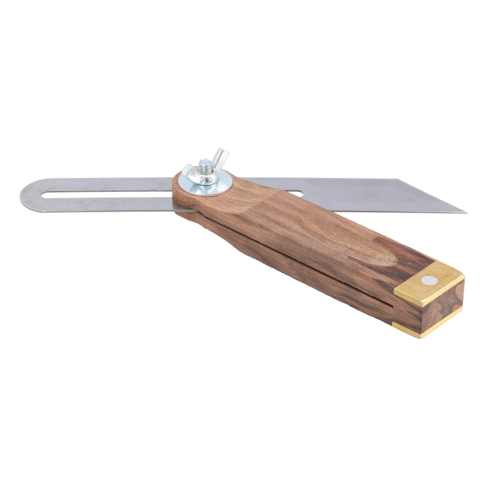 STUBAI Gehrmaß 200 mm beweglich | hochwertige Federstahlschiene mit Nussholzschenkel | Profi Winkelmesser für präzise Messungen und Markierungen