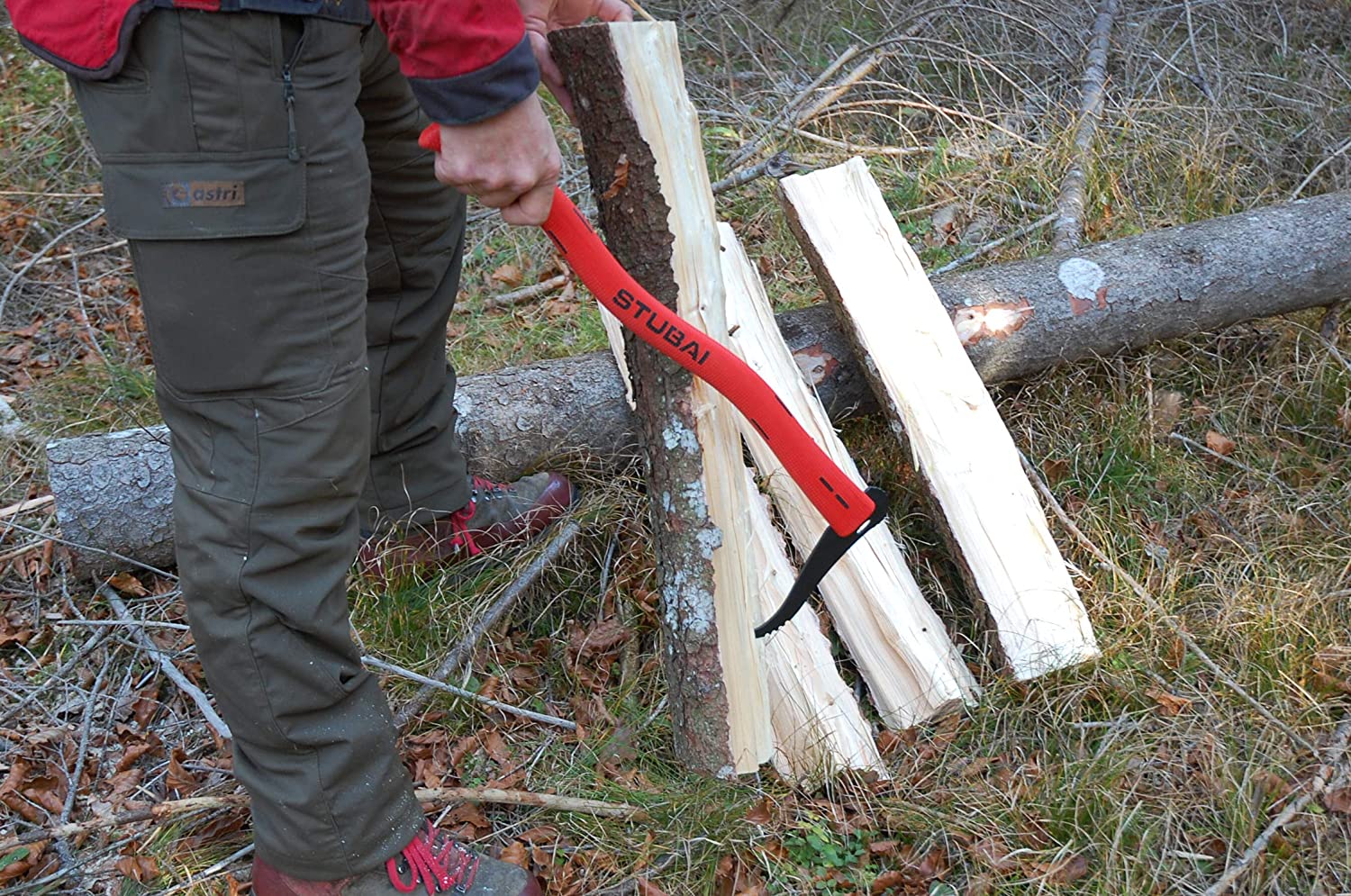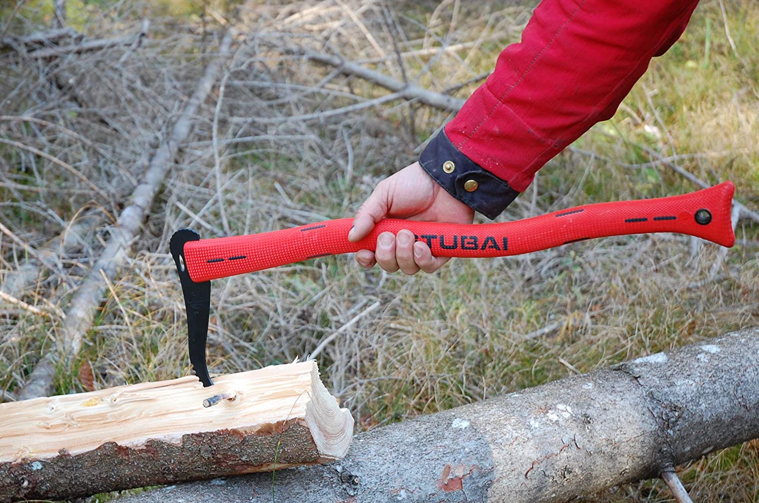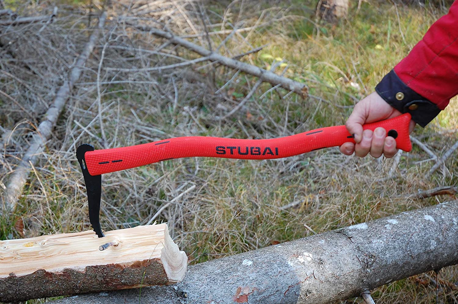 STUBAI Handsappel mit rotem Kunststoffstiel | 600 mm | Sappel zum Aufnehmen und Transportieren von kleineren Holzstücken und Baumstämmen
