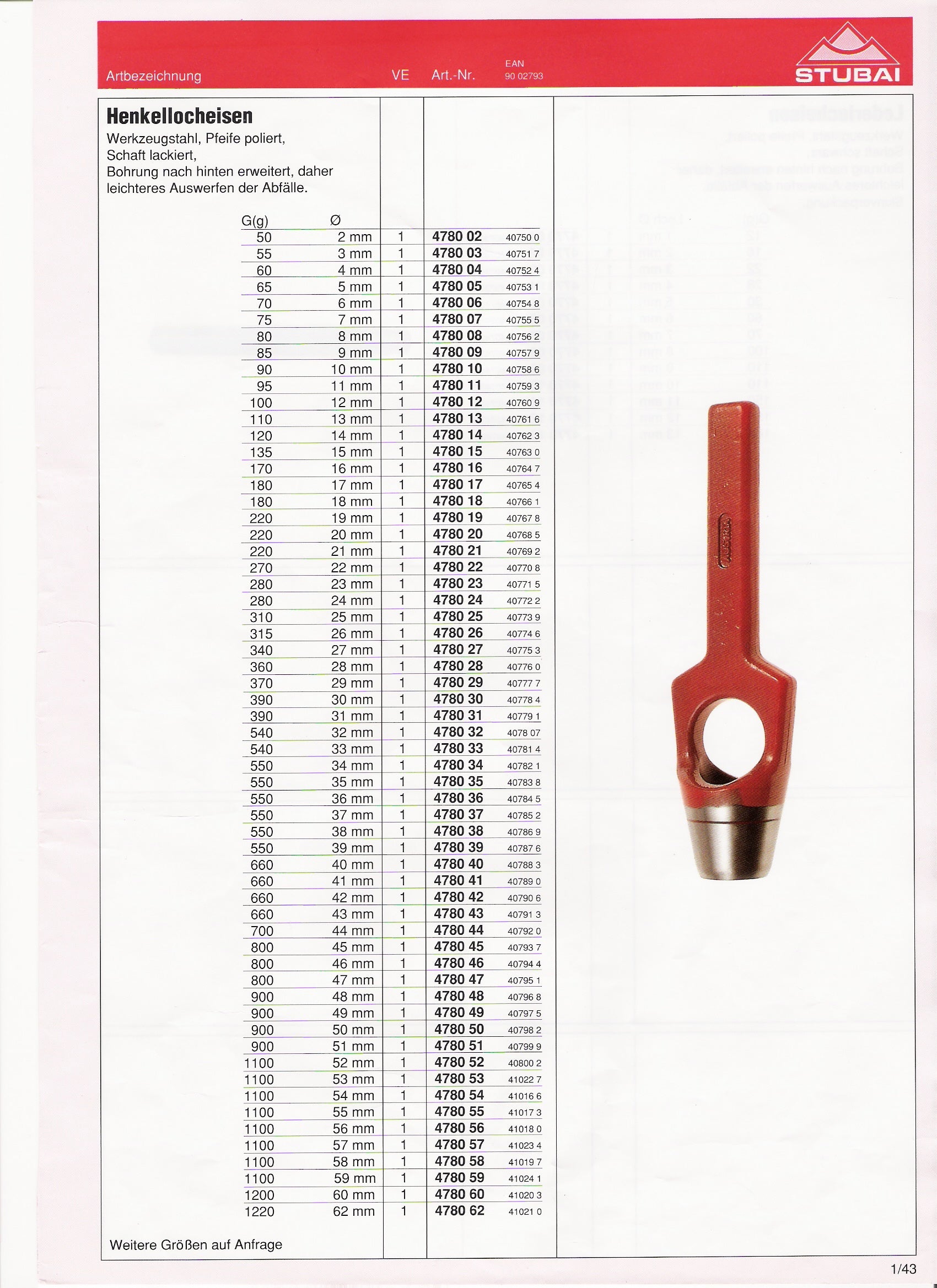 STUBAI Henkellocheisen 5 mm zum Lochen oder Herstellen von Dichtungen und Dichtungsringen aus Gummi/ Leder/ Filz/ Kunststoff/ Kork/ Stoff oder ähnlichen Materialien - Gefertigt aus Werkzeugstahl nach DIN 7200 A - Rot tauchlakiert - Made in Austria