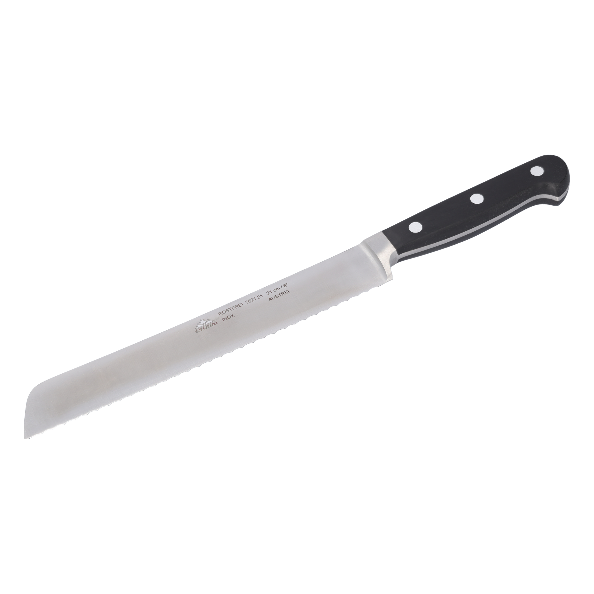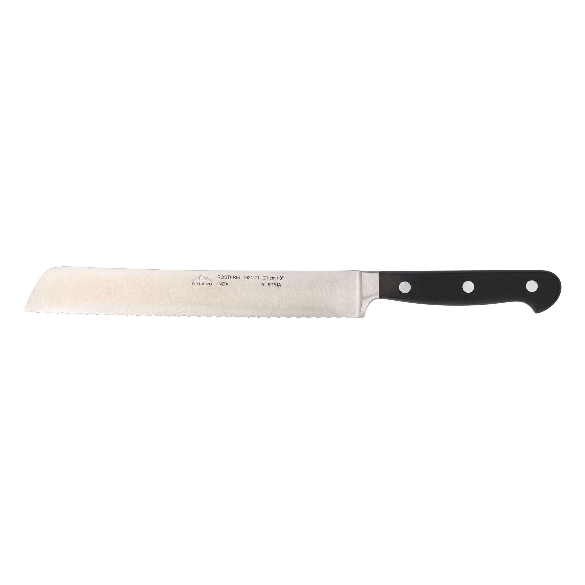 STUBAI hochwertiges Brotmesser geschmiedet | 200 mm | Brotsäge Konditorsäge mit Wellenschliff aus Edelstahl für müheloses Schneiden von Brot, Kuchen & Backwaren, spülmaschinenfest, schwarzer Griff
