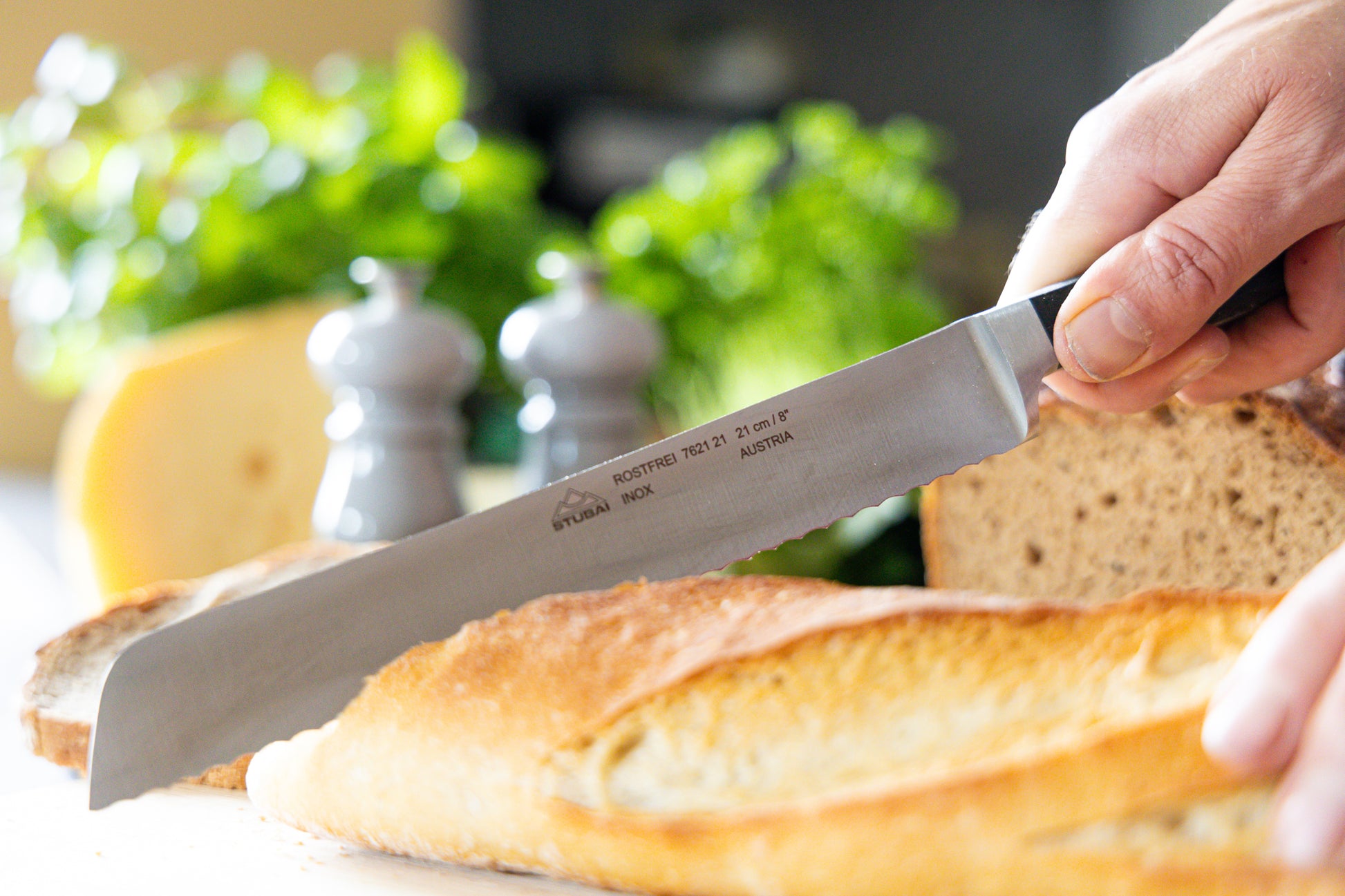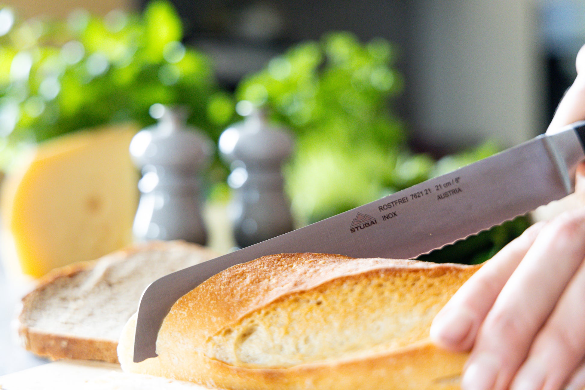Das Brotmesser von STUBAI ist ein unverzichtbares Werkzeug für das Schneiden von Brot in Ihrer Küche! Das Küchenmesser zeichnet sich durch seine hochwertige Klinge aus rostfreiem Chrom-Molybdän-Edelstahl aus, die aus einem einzigen Stück geschmiedet wurde. Dadurch wird eine außergewöhnliche Schneidleistung erreicht, die durch eine Spezialhärtung, balligen Schliff und Handabzug noch weiter verbessert wird. Jeder Klingenrand ist fein ausgeschliffen und poliert, um müheloses Schneiden von Brot und anderen Backwaren zu ermöglichen. Der spülmaschinenfeste Griff der Konditorsäge besteht aus hochwertigem Polypropylen und ist leicht zu reinigen. Mit seiner handlichen und ergonomischen Form liegt der Griff bequem in der Hand und sorgt für eine optimale Kontrolle beim Schneiden. Er ist fugendicht verschweißt und speziell vernietet, um höchsten Lebensmittel- und Hygienestandards zu entsprechen. Die Brotsäge ist ein unverzichtbares Werkzeug für jeden Brotliebhaber. Genießen Sie präzise und saubere Schnitte, um Ihr Brot perfekt zu portionieren und zu servieren. Erleben Sie die herausragende Qualität und Leistung dieses Küchenmessers und lassen Sie sich von seiner Haltbarkeit und Zuverlässigkeit beeindrucken. Holen Sie sich jetzt das Brotmesser und machen Sie das Schneiden von Brot zu einem mühelosen und angenehmen Erlebnis in Ihrer Küche!