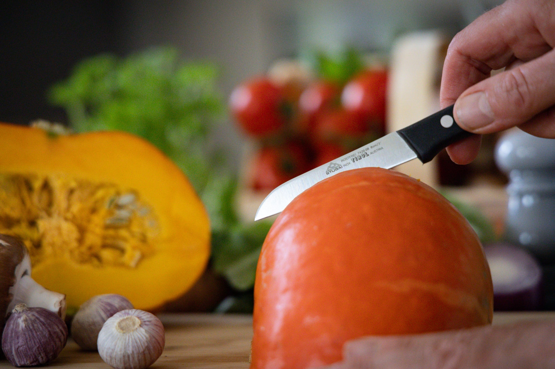 STUBAI hochwertiges Gemüsemesser gerade Schneide | 80 mm | Küchenmesser Tirol aus Edelstahl für müheloses Schneiden von Gemüse, Obst & Lebensmitteln, rostfrei, spülmaschinenfest
