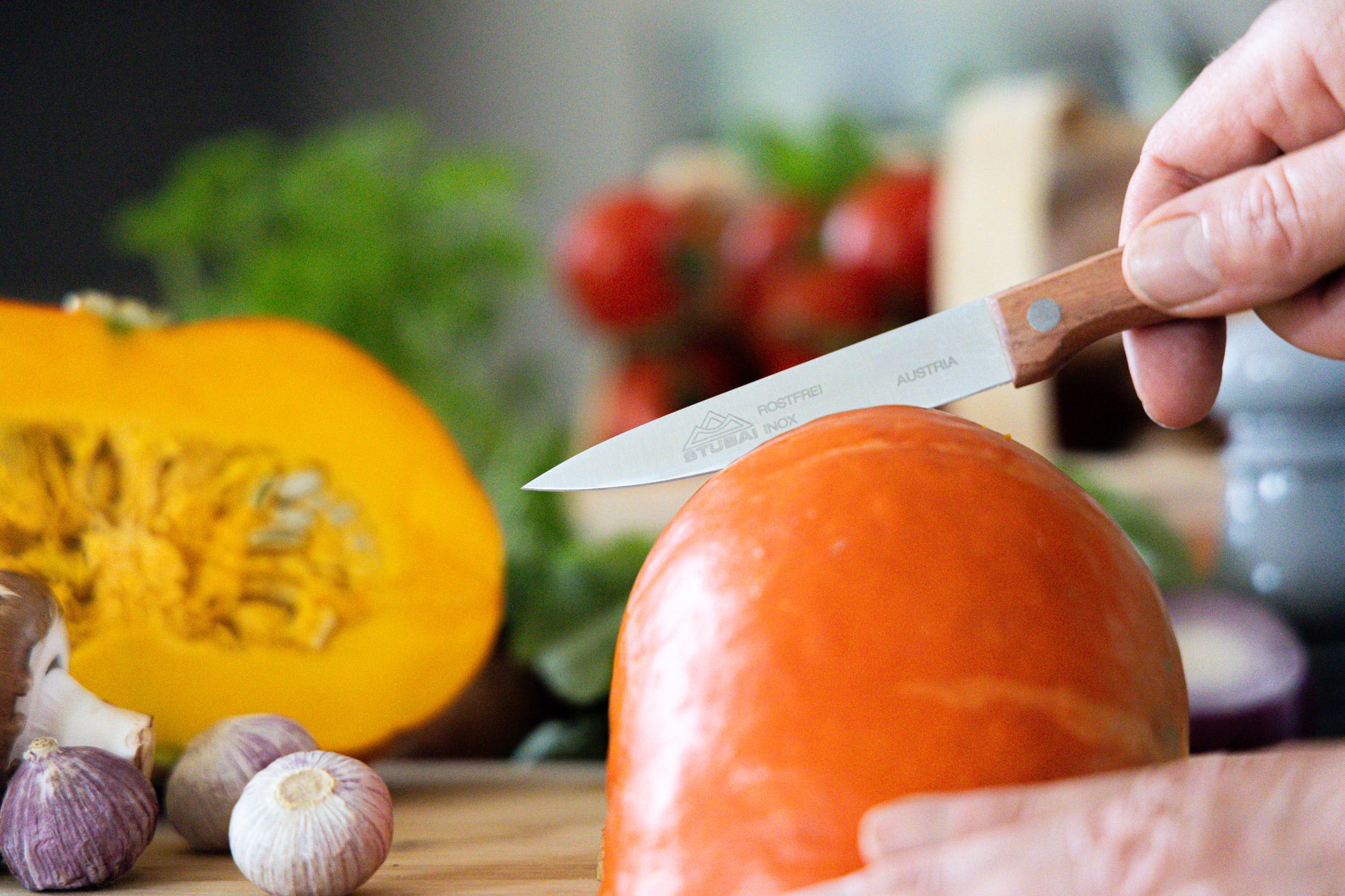 Das Gemüsemesser von STUBAI ist das ideale Werkzeug für alle, die Wert auf präzise Schnitte und eine außergewöhnliche Schneidleistung legen. Mit einem fein ausgeschliffenen und polierten Klingenrand, einer Spezialhärtung sowie einem balligen Schliff und Handabzug sorgt dieser Gemüsemesser für eine einwandfreie Schneidequalität. Das vielseitige Küchenwerkzeug ist ein wahres Allround-Talent. Es eignet sich nicht nur als Gemüsemesser und Obstmesser, sondern auch als Schälmesser. Egal ob Sie Gemüse, Obst oder andere Lebensmittel schneiden, schälen oder zerkleinern möchten, mit diesem Messer gelingt Ihnen das mühelos und mit Leichtigkeit. Die gezackte Klinge mit Wellenschliff ermöglicht ein einfaches Schneiden von Möhren, Radieschen, Gurken und anderen festen Nahrungsmitteln. Der Griff des Küchenmessers verfügt über eine fugendichte Verschweißung sowie spezielle Vernietungen, die höchsten Standards für Lebensmittelsicherheit und Hygiene entsprechen. Der ergonomische rutschsichere Schutzgriff aus hochwertigem Edelholz sorgt für eine komfortable und sichere Handhabung. Ob Sie Rechts- oder Linkshänder sind, dieses Gemüsemesser passt sich perfekt an Ihre Hand an. Die Klinge des Gemüsemesser besteht aus rostfreiem Chrom-Molybdän-Edelstahl. Dadurch wird maximale Stabilität und Langlebigkeit gewährleistet. Das Gemüsemesser von STUBAI überzeugt durch seine herausragende Schneidleistung, präzise Schnitte und eine hohe Qualität. Mit diesem Messer in der Küche haben Sie ein Werkzeug, das Ihnen bei verschiedenen Anwendungen ein zuverlässiger Partner ist.