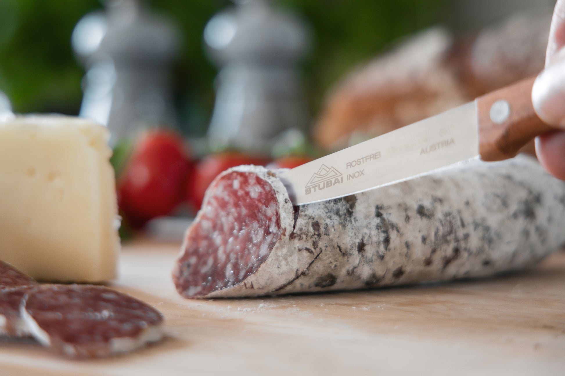 STUBAI hochwertiges Gemüsemesser mit Edelholzgriff | 100 mm, 40 g | Küchenmesser aus Edelstahl zum Schneiden von Gemüse, Gurken, Obst & Lebensmitteln, rostfrei
