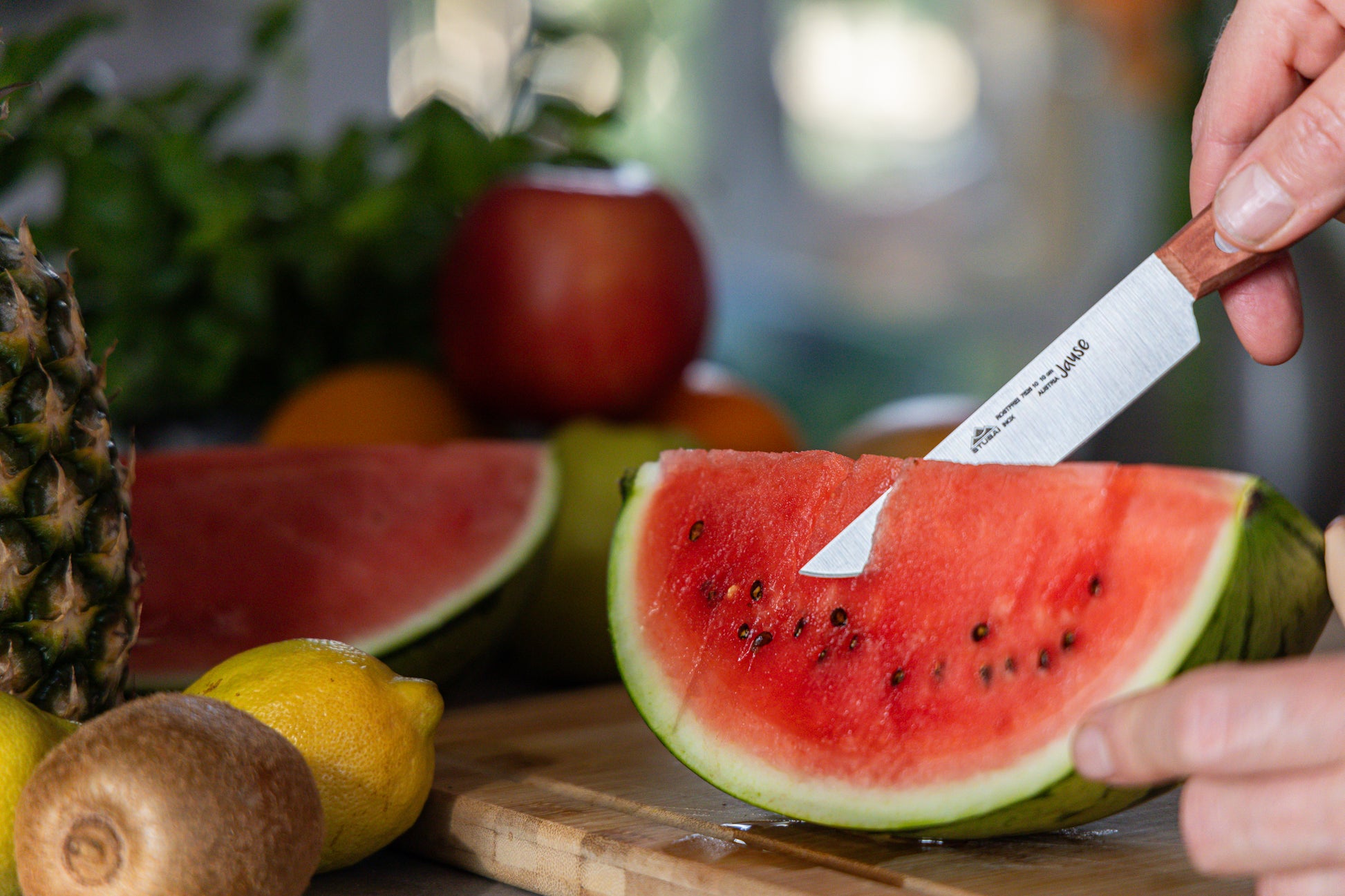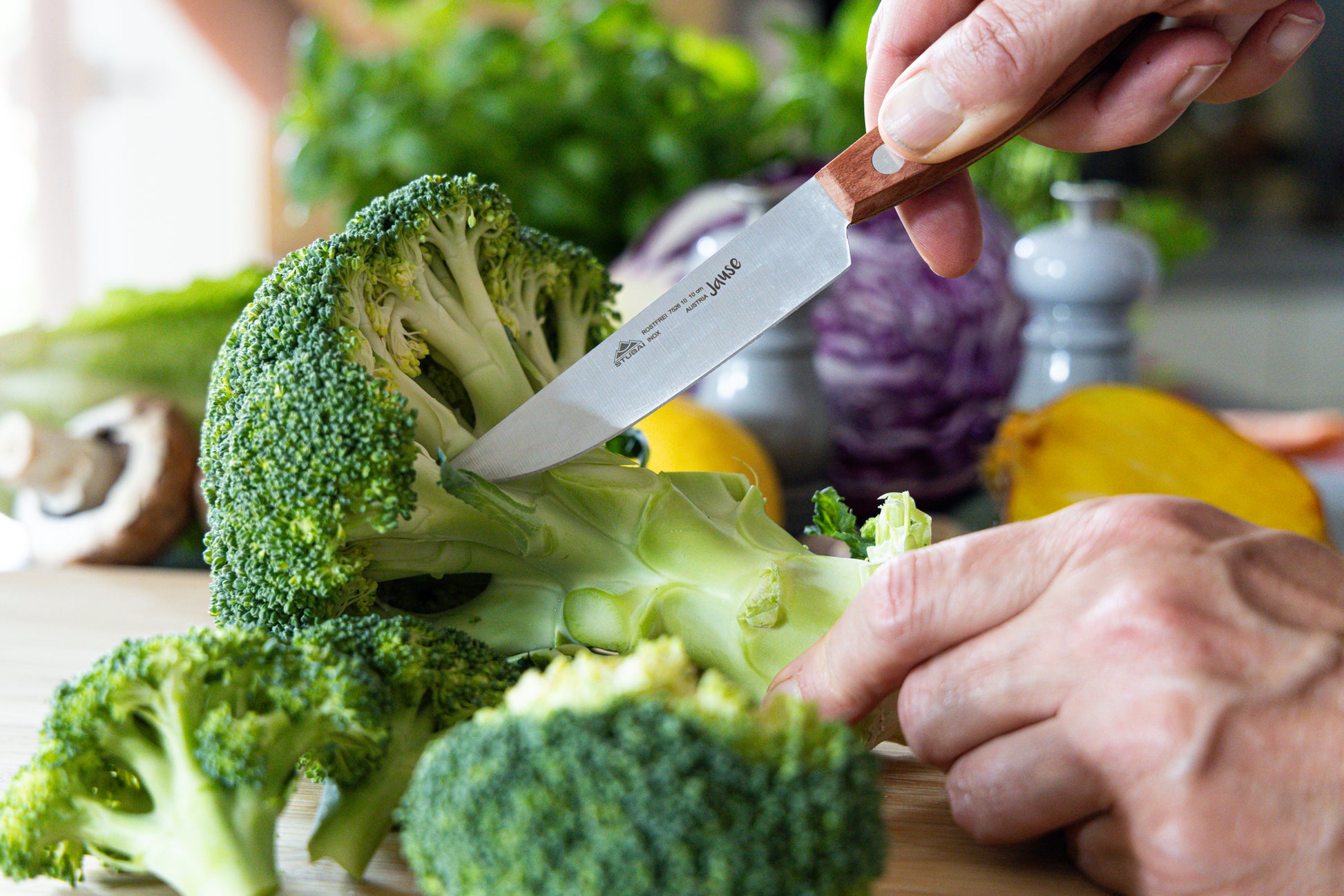 Dieses exquisit gestaltete Jausenmesser von STUBAI vereint traditionelles Handwerk mit moderner Präzision, um Ihnen ein erstklassiges Küchenwerkzeug zu bieten. Das Messer zeichnet sich durch seinen wunderschönen Holzgriff aus, der nicht nur ästhetisch ansprechend ist, sondern auch eine angenehme Haptik bietet. Die Klinge dieses Jausenmessers wurde aus hochwertigem rostfreiem Edelstahl gefertigt, was eine langanhaltende Schärfe und außergewöhnliche Schnittleistung garantiert. Sie eignet sich perfekt für das Schneiden von Brot, Käse, Aufschnitt, Obst und vielem mehr. Das Messer verfügt über eine scharfe, präzise Schneide, die mühelos durch verschiedene Lebensmittel gleitet. Der Holzgriff ist nicht nur eine Augenweide, sondern bietet auch eine komfortable und sichere Handhabung. Das ergonomische Design passt sich Ihrer Hand an und ermöglicht präzises Arbeiten, ohne Ermüdungserscheinungen. Das STUBAI Jausenmesser mit Holzgriff ist nicht nur ein zuverlässiges Werkzeug in der Küche, sondern auch ein stilvolles Accessoire auf Ihrem Esstisch. Mit seiner Kombination aus Funktionalität und Eleganz ist es die perfekte Wahl für Genießer und Gourmets.