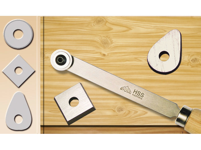 Mit 3 verschiedenen Formplatten.Spezialwerkzeug zur Feinbearbeitung von innenliegenden Flächen und Rundungen, z.B. bei Dosen oder Schalen, sowie zum Hinterschneiden von Drechselarbeiten.