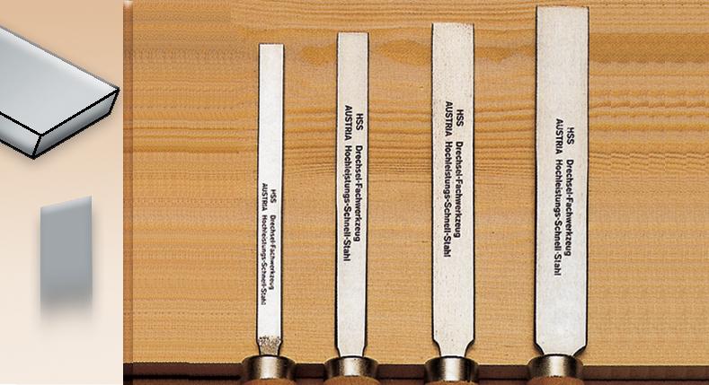 Nr. 7024 STUBAI Flachstahl, gerade Werden zum Bearbeiten von Querholz (wie z.B.Schüsseln, Dosen, Teller usw.) verwendet. Nach demVorarbeiten mit der herkömmlichen Drehröhre oder derSchüsselröhre können mit diesem Werkzeug nochNacharbeiten und Endarbeiten ausgeführt werden.Durch die feine Spanabnahme ist eine saubereOberfläche möglich. Verwendung mit Grat. Das Eisen istGERADE und hat nur auf einer Seite die Fase angeschliffen.