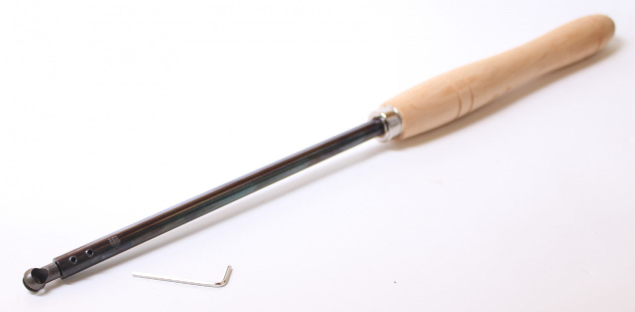 Der Kugelschneider bietet sich für die Verwendung im Langholzbereich für Dosen, Kelche und Becher an. Das Werkzeug arbeitet schneidend und nicht schabend. Durch die Kugelform und der Schneidgeometrie liegt der Anlegepunkt am Werkstück vor dem Schnittpunkt, wodurch eine bessere Oberfläche erzielt wird. Dadurch lassen sich Mondringe bzw. hartgedrückte Hirnholzflächen vermeiden. Die Öffnung an der Kugel dient zum sauberen Auswurf der Späne.Bei ordnungsgemäßer Handhabung ist die Gefahr des Verfangens sehr gering, da sich das Werkzeug sofort über den Ansetzpunkt abrollt. Der Kugelschneider kann mit einer dünnen Schleifscheibe nachgeschärft werden (max. Stärke der Schleifscheibe: 3,2mm).Ersatz-Kugelkopf auf Anfrage erhältlich. Hochleistungs-Schnell-Stahl (HSS), gefertigt aus hochlegiertem Wolfram-Molybdän-Stahl. Arbeitsbereich Härte 63 HRC. Hohe Hitzebeständigkeit verhindert Abstumpfen der Klinge. Klinge fein poliert. Hohe Standzeit sowie Verschleißfestigkeit. Heft aus Erlenholz mindert Vibrationen. Ergonomischer Griff für festen und angenehmen Halt. Technische Daten: Grifflänge: ca. 300 mm Klingenbreite: ca. 14 mm Klingenlänge: ca. 285 mm Gewicht: ca. 540 g