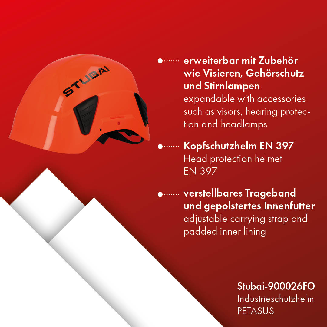 STUBAI Industrieschutzhelm PETASUS | Orange, 560 g | Kopfschutzhelm EN 397 zum Schutz des Kopfes vor Stößen und Kopfverletzungen in der Bauindustrie, Forstwirtschaft, Fabriken