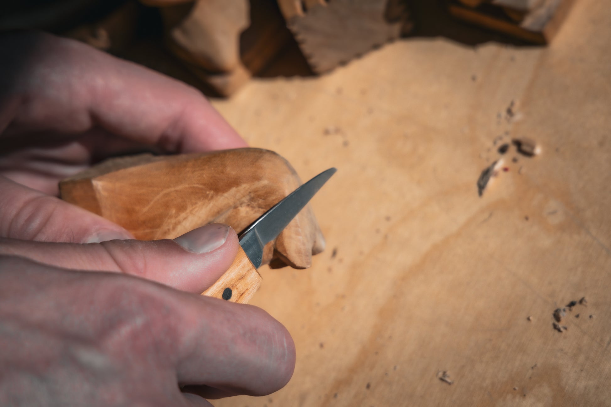 Das STUBAI Kerbschnitzmesser ist ein vielseitig verwendbares Werkzeug, das sowohl für Holzschnitzereien als auch zur Veredelung von Rosen eingesetzt werden kann. Es eignet sich besonders für Holzarten wie Linde, Erle, Birnbaum, feinjährige Fichte und Zirbelkiefer mit gleichmäßiger Maserung. Das Schnitzwerkzeug überzeugt durch seine besonders robuste Fertigung, die Langlebigkeit und beständige Schneidleistung gewährleistet. Das Kerbschnitzmesser kann zum Herstellen von Linolschnitten, Reliefs, Intarsien (Einlegearbeiten) und figürlichem Schnitzen verwendet werden. Dieses Kerbschnitzmesser eignet sich auch zur Gartenarbeit und hier insbesondere zum Beschneiden von Rosen und anderen Sträuchern. "Okuliermesser". Das Messer ist einfach zu handhaben und führt bei Hobbyschnitzern und Schnitzanfängern zu einem schnellen Lernerfolg. Auch Profi-Schnitzer schätzen die Qualität dieses Holzschnitzmessers. Die Klinge des Kerbschnitz- und Rosenmessers besteht aus speziellem Kohlenstoffstahl, der in der modernen, werkseigenen Härterei auf 58-60 HRC wärmebehandelt wird. Dadurch sind maximale Stabilität und Haltbarkeit für ein präzises und zuverlässiges Schnitzen garantiert. Das Messer wird auf 20 bis 30 Grad vorgeschliffen und kann je nach Bedarf nachgeschärft werden. Mit seiner perfekt abgestimmten Form und Größe ermöglicht es freihändiges Schnitzen von kleineren Figuren, Kerbschnitz- und Flechtarbeiten sowie die Gestaltung von Kreuzen, Madonnen, Engeln und Krippenfiguren. Der lange, handliche Griff des Messers aus lackiertem Buchenholz ermöglicht durch seine ergonomische Form ermüdungsfreies Arbeiten. Ob Sie als Hobby-Schnitzer Ihre ersten Werke kreieren oder als Profi wahre Meisterwerke erschaffen, das STUBAI Kerbschnitzmesser ist ein unverzichtbares Werkzeug für jeden Holzliebhaber. Verlassen Sie sich auf die Qualität dieses Messers und lassen Sie Ihrer Kreativität freien Lauf. Entdecken Sie mit diesem hochwertigen und vielseitigen Kerbschnitzmesser von STUBAI die Welt der Holzbearbeitung und freuen Sie sich auf einen zuverlässigen Begleiter bei der Herstellung Ihrer handwerklichen Meisterwerke.