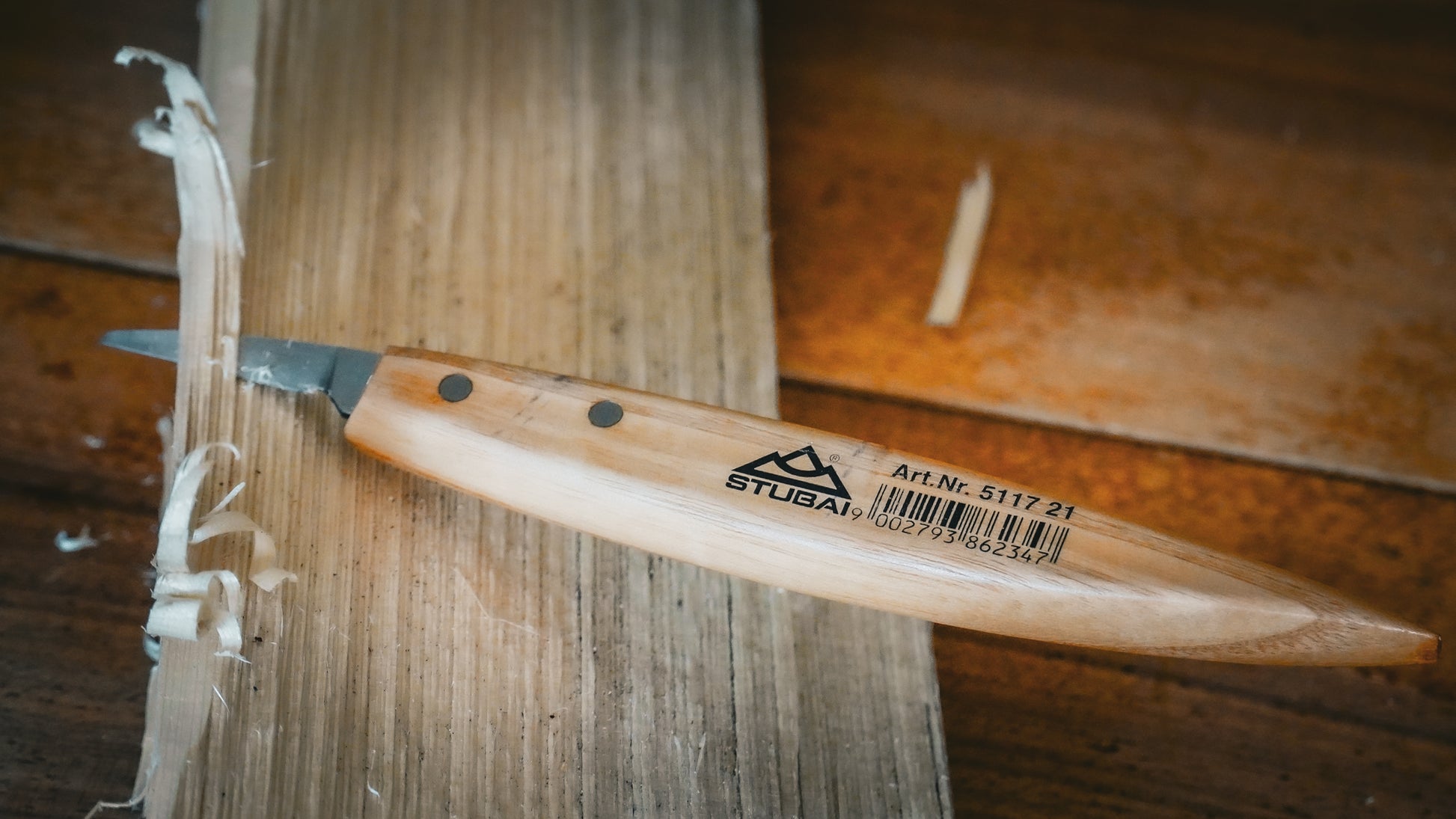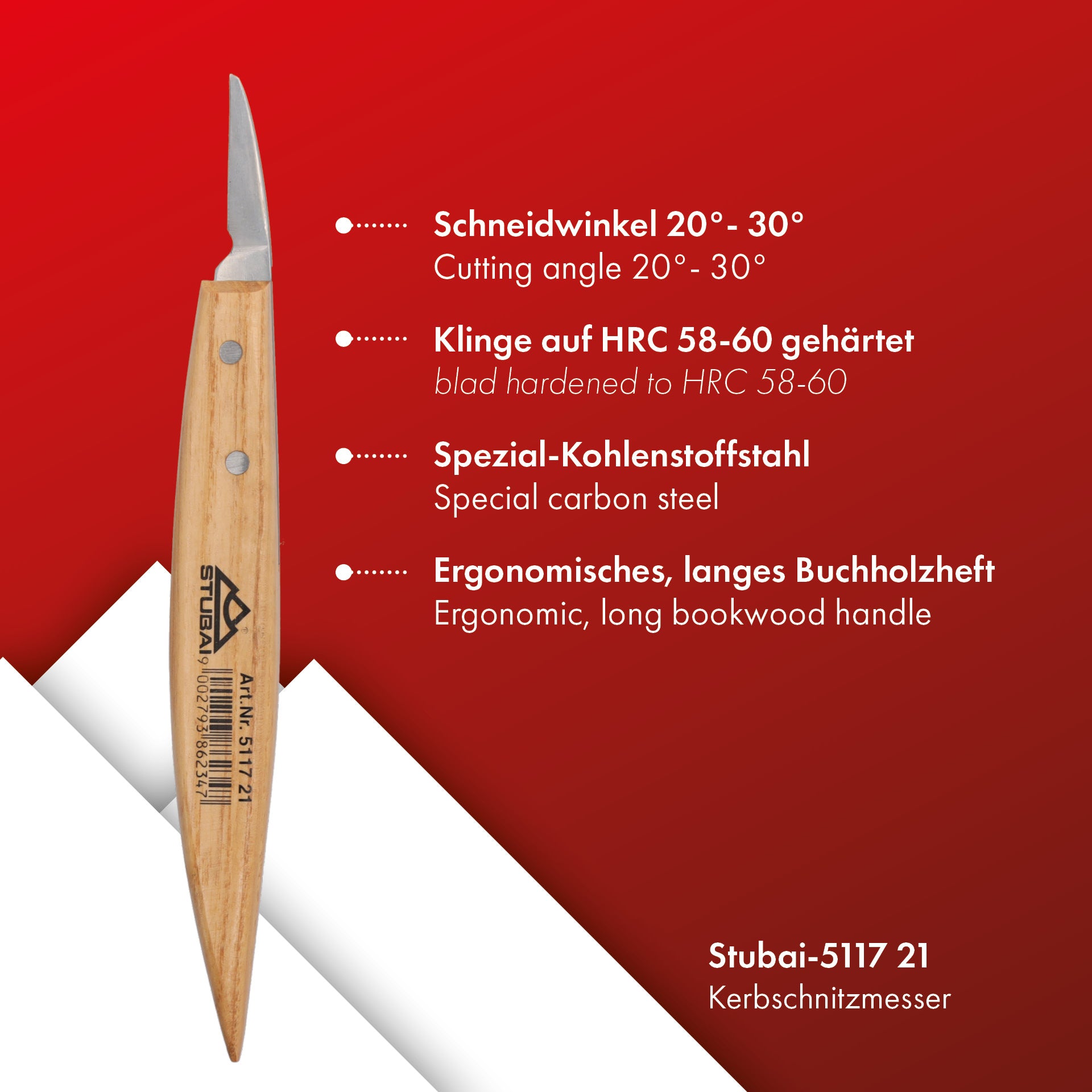 STUBAI Kerbschnitzmesser 35 mm | Kerbschnitzmesser mit Holzheft, extra scharf geschliffen, gerade Klinge, SB-V, Holzbearbeitung, Schnitzwerkzeug