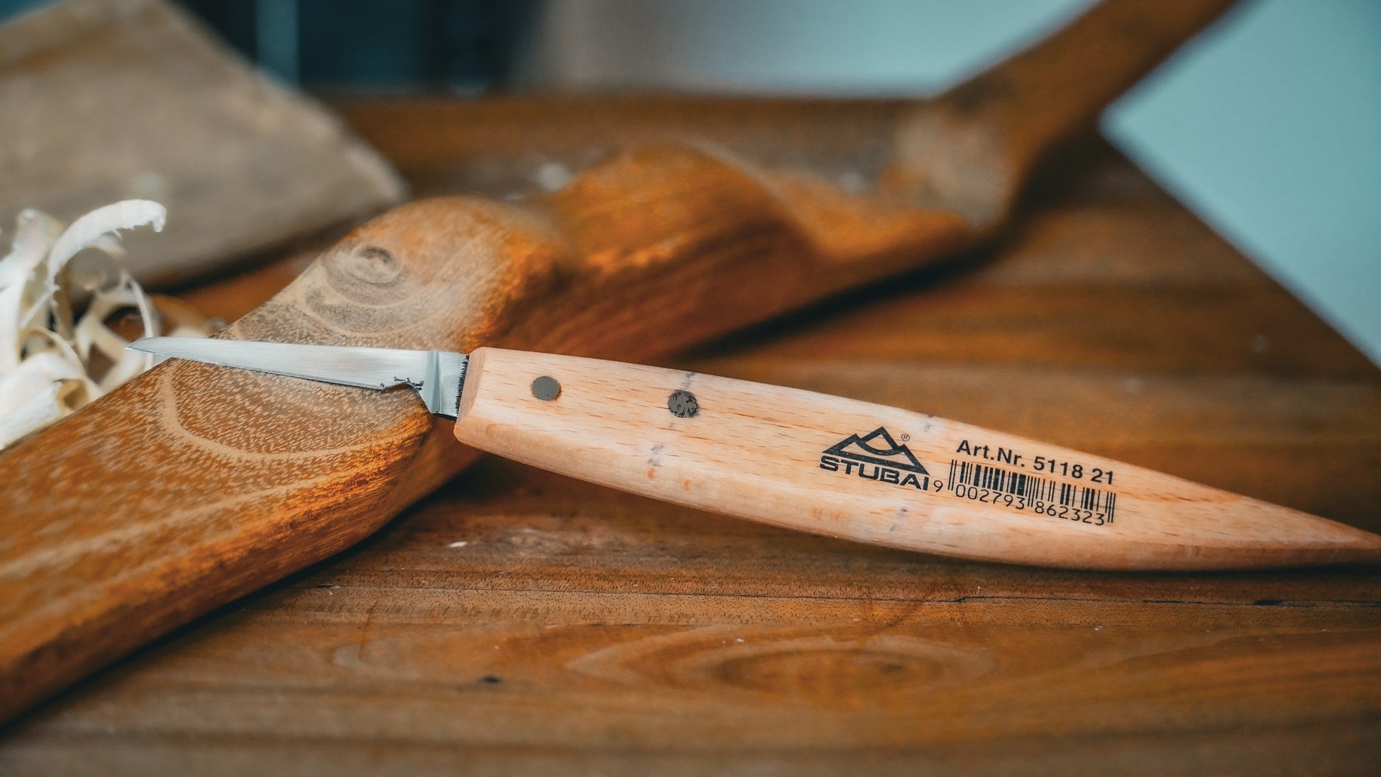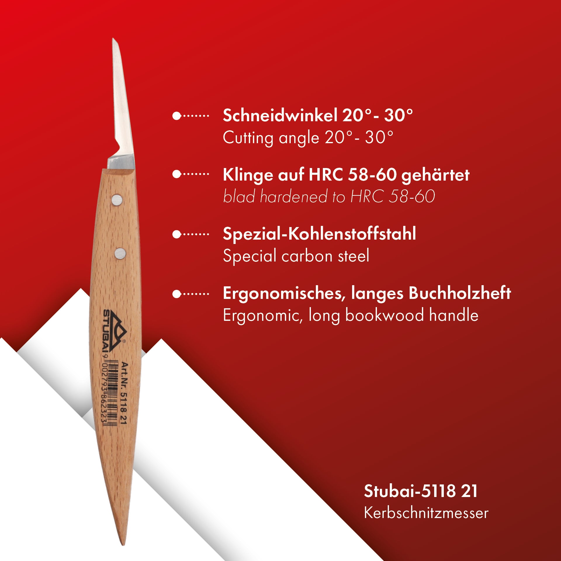 STUBAI Kerbschnitzmesser 45 mm | Kerbschnitzmesser mit Holzheft, extra scharf geschliffen, gerade Klinge, SB-V, Holzbearbeitung, Schnitzwerkzeug