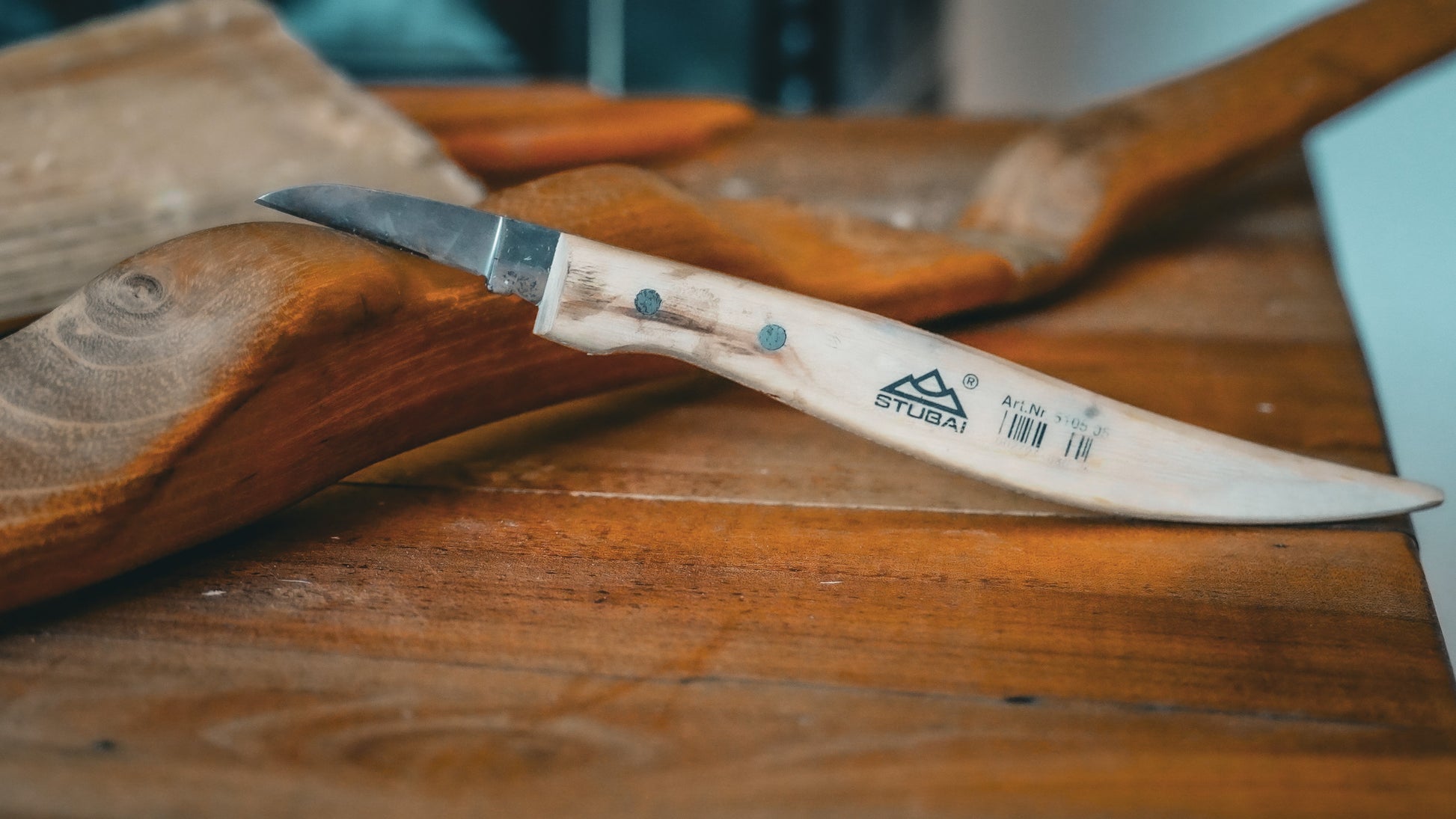 Das STUBAI Kerbschnitzmesser ist ein vielseitig verwendbares Werkzeug, das für verschiedene Holzschnitzereien verwendet werden kann. Es eignet sich besonders für Holzarten wie Linde, Erle, Birnbaum, feinjährige Fichte und Zirbelkiefer mit gleichmäßiger Maserung. Das Schnitzwerkzeug überzeugt durch seine besonders robuste Fertigung, die Langlebigkeit und beständige Schneidleistung gewährleistet. Das Kerbschnitzmesser kann zum Herstellen von Linolschnitten, Reliefs, Intarsien (Einlegearbeiten) und figürlichem Schnitzen verwendet werden. Das Messer ist einfach zu handhaben und führt bei Hobbyschnitzern und Schnitzanfängern zu einem schnellen Lernerfolg. Auch Profi-Schnitzer schätzen die Qualität dieses Holzschnitzmessers. Die Klinge des Kerbschnitzmessers besteht aus speziellem Kohlenstoffstahl, der in der modernen, werkseigenen Härterei auf 58-60 HRC wärmebehandelt wird. Dadurch sind maximale Stabilität und Haltbarkeit für ein präzises und zuverlässiges Schnitzen garantiert. Das Messer wird auf 20 bis 30 Grad vorgeschliffen und kann je nach Bedarf nachgeschärft werden. Mit seiner perfekt abgestimmten Form und Größe ermöglicht es freihändiges Schnitzen von kleineren Figuren, Kerbschnitz- und Flechtarbeiten sowie die Gestaltung von Kreuzen, Madonnen, Engeln und Krippenfiguren. Der lange, handliche Griff des Messers aus lackiertem Buchenholz ermöglicht durch seine ergonomische Form ermüdungsfreies Arbeiten. Ob Sie als Hobby-Schnitzer Ihre ersten Werke kreieren oder als Profi wahre Meisterwerke erschaffen, das STUBAI Kerbschnitzmesser ist ein unverzichtbares Werkzeug für jeden Holzliebhaber. Verlassen Sie sich auf die Qualität dieses Messers und lassen Sie Ihrer Kreativität freien Lauf. Entdecken Sie mit diesem hochwertigen und vielseitigen Kerbschnitzmesser von STUBAI die Welt der Holzbearbeitung und freuen Sie sich auf einen zuverlässigen Begleiter bei der Herstellung Ihrer handwerklichen Meisterwerke.
