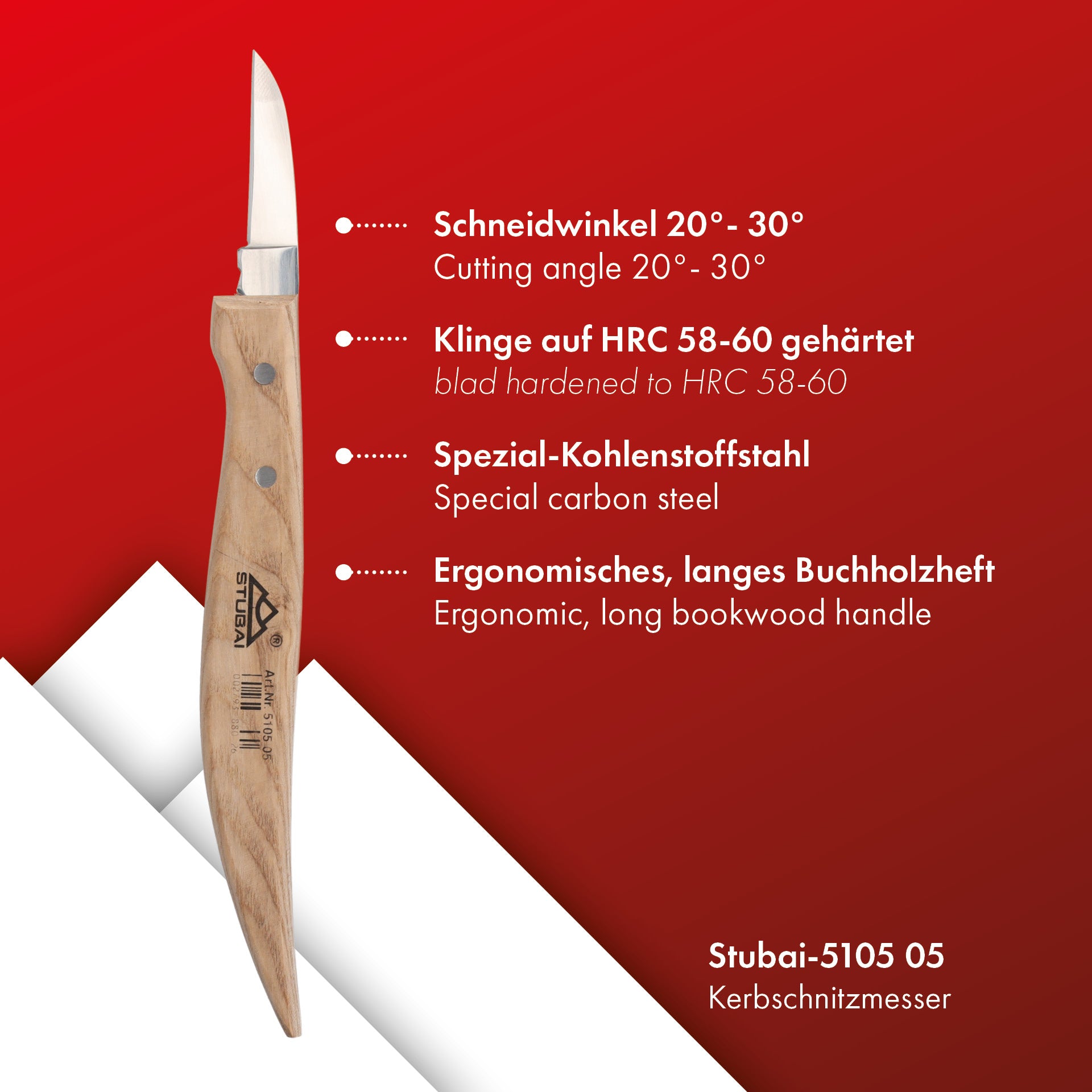 STUBAI Kerbschnitzmesser 50 mm | Kerbschnitzmesser mit Holzheft, gerade Schneide und runder Rücken, Holzbearbeitung, Schnitzwerkzeug