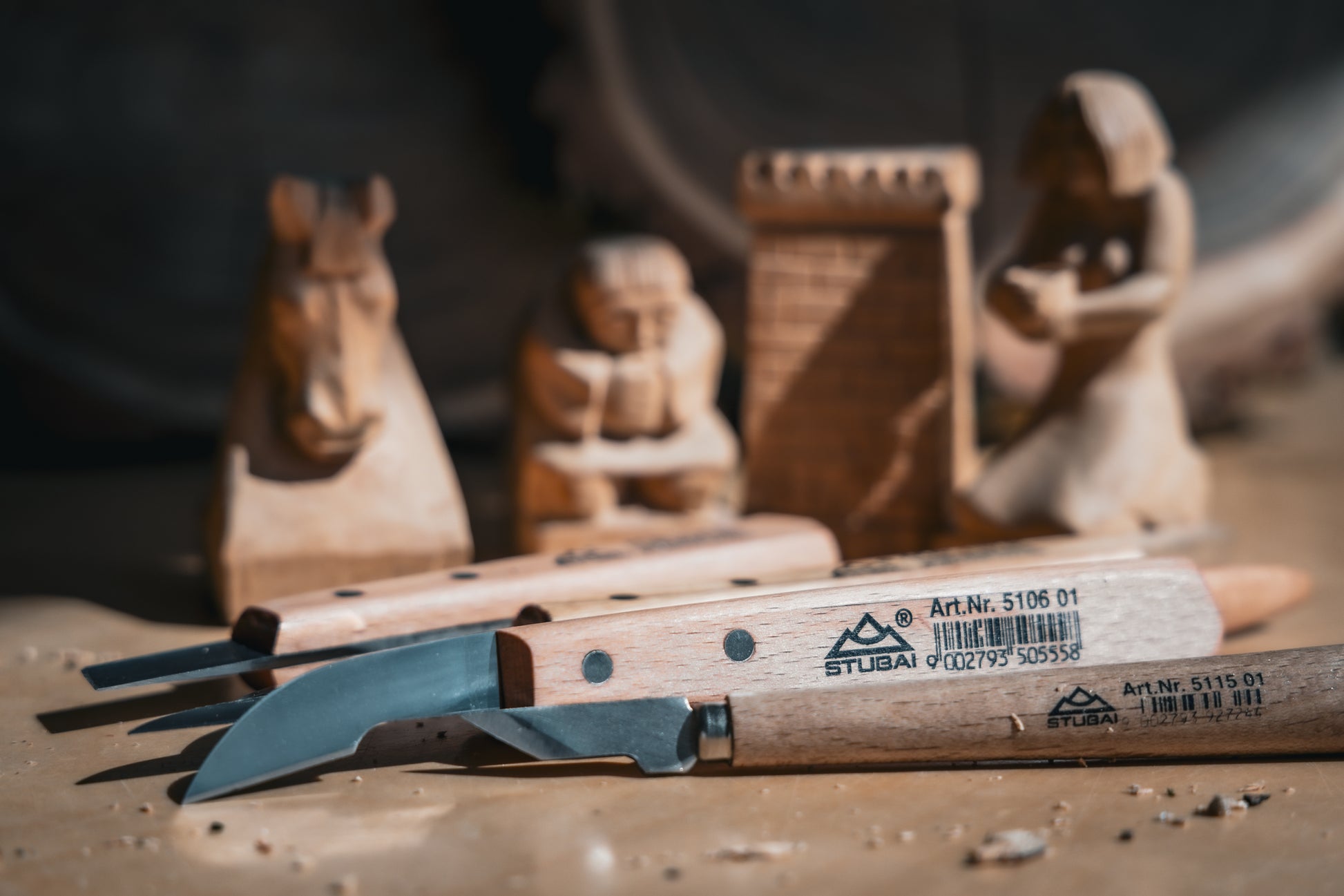 Das STUBAI Kerbschnitzmesser ist ein vielseitig verwendbares Werkzeug, das für verschiedene Holzschnitzereien verwendet werden kann. Es eignet sich besonders für Holzarten wie Linde, Erle, Birnbaum, feinjährige Fichte und Zirbelkiefer mit gleichmäßiger Maserung. Das Schnitzwerkzeug überzeugt durch seine besonders robuste Fertigung, die Langlebigkeit und beständige Schneidleistung gewährleistet. Das Kerbschnitzmesser kann zum Herstellen von Linolschnitten, Reliefs, Intarsien (Einlegearbeiten) und figürlichem Schnitzen verwendet werden. Das Messer ist einfach zu handhaben und führt bei Hobbyschnitzern und Schnitzanfängern zu einem schnellen Lernerfolg. Auch Profi-Schnitzer schätzen die Qualität dieses Holzschnitzmessers. Die Klinge des Kerbschnitzmessers besteht aus speziellem Kohlenstoffstahl, der in der modernen, werkseigenen Härterei auf 58-60 HRC wärmebehandelt wird. Dadurch sind maximale Stabilität und Haltbarkeit für ein präzises und zuverlässiges Schnitzen garantiert. Das Messer wird auf 20 bis 30 Grad vorgeschliffen und kann je nach Bedarf nachgeschärft werden. Mit seiner perfekt abgestimmten Form und Größe ermöglicht es freihändiges Schnitzen von kleineren Figuren, Kerbschnitz- und Flechtarbeiten sowie die Gestaltung von Kreuzen, Madonnen, Engeln und Krippenfiguren. Der lange, handliche Griff des Messers aus lackiertem Buchenholz ermöglicht durch seine ergonomische Form ermüdungsfreies Arbeiten. Ob Sie als Hobby-Schnitzer Ihre ersten Werke kreieren oder als Profi wahre Meisterwerke erschaffen, das STUBAI Kerbschnitzmesser ist ein unverzichtbares Werkzeug für jeden Holzliebhaber. Verlassen Sie sich auf die Qualität dieses Messers und lassen Sie Ihrer Kreativität freien Lauf. Entdecken Sie mit diesem hochwertigen und vielseitigen Kerbschnitzmesser von STUBAI die Welt der Holzbearbeitung und freuen Sie sich auf einen zuverlässigen Begleiter bei der Herstellung Ihrer handwerklichen Meisterwerke.