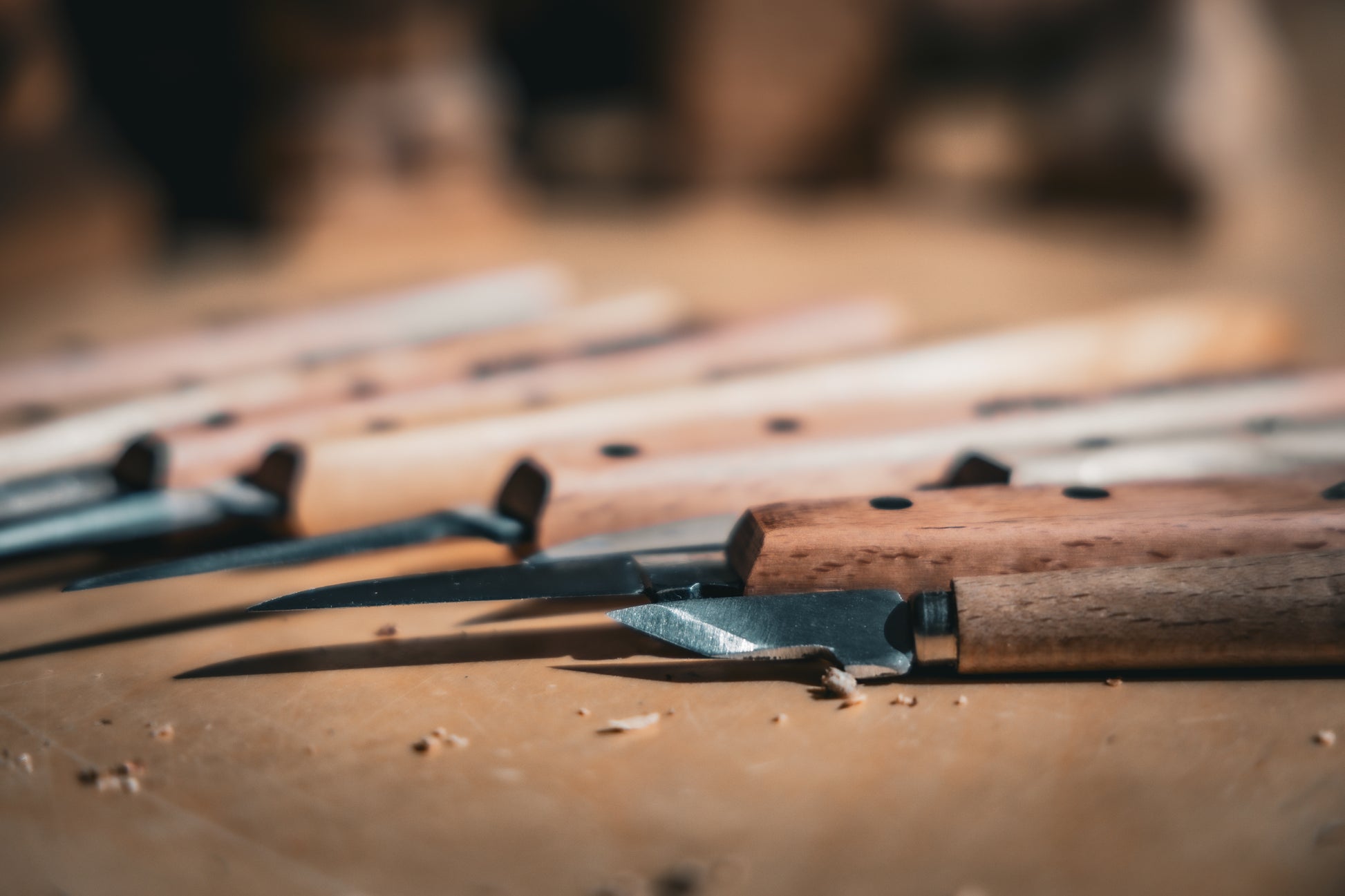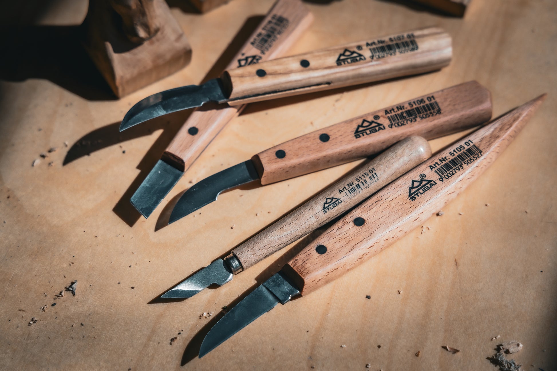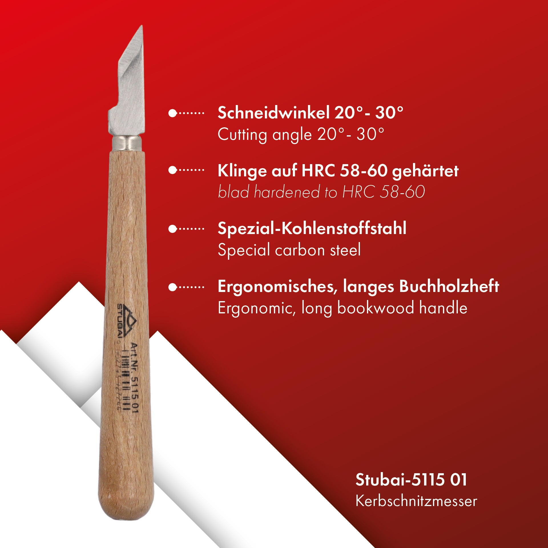 STUBAI Kerbschnitzmesser 50 mm | Kerbschnitzmesser mit Holzheft, schmale Klinge, schräge Schneide, Holzbearbeitung, Schnitzwerkzeug