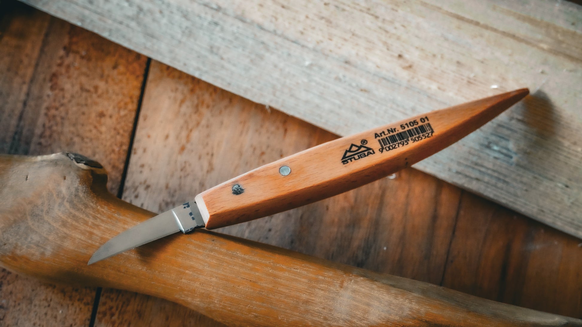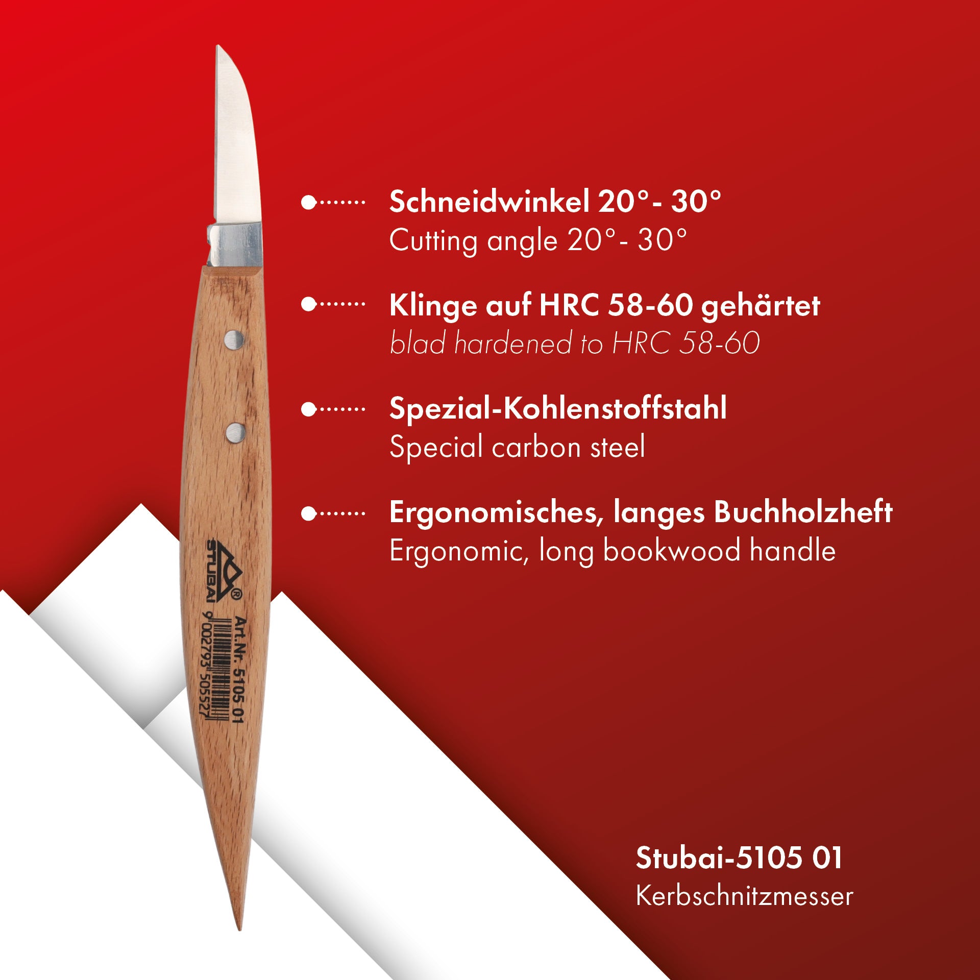 STUBAI Kerbschnitzmesser 50 mm | Schnitzmesser mit Holzheft, gerade Schneide und runder Rücken | Rosenmesser Schnitzwerkzeug, Holzbearbeitung