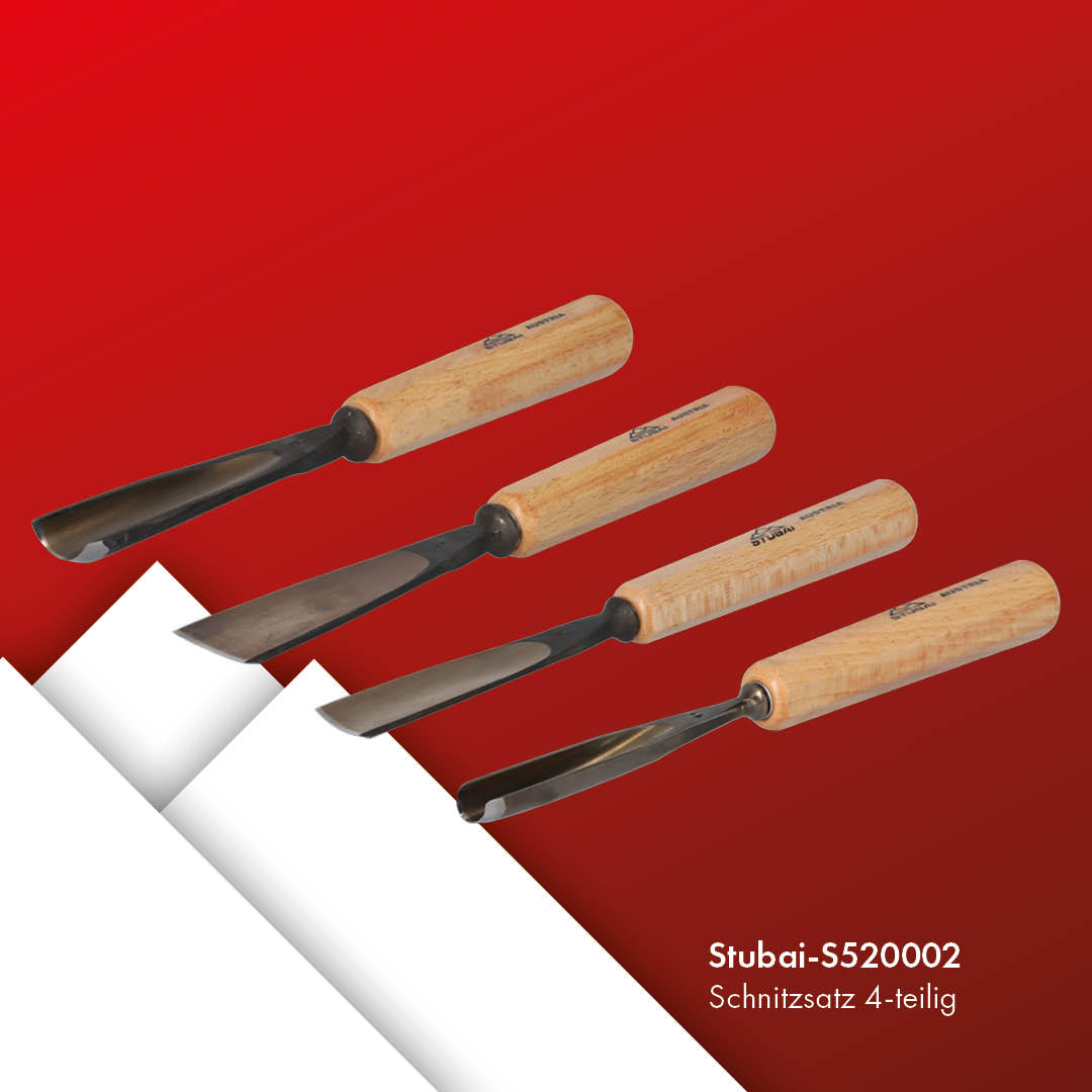 STUBAI Kerbschnitzmesser Satz 4-teilig | Schnitzmesser mit Holzheft, Holzschnitzwerkzeug für feine Schnitzarbeiten, Holzbearbeitung, Schnitzwerkzeug