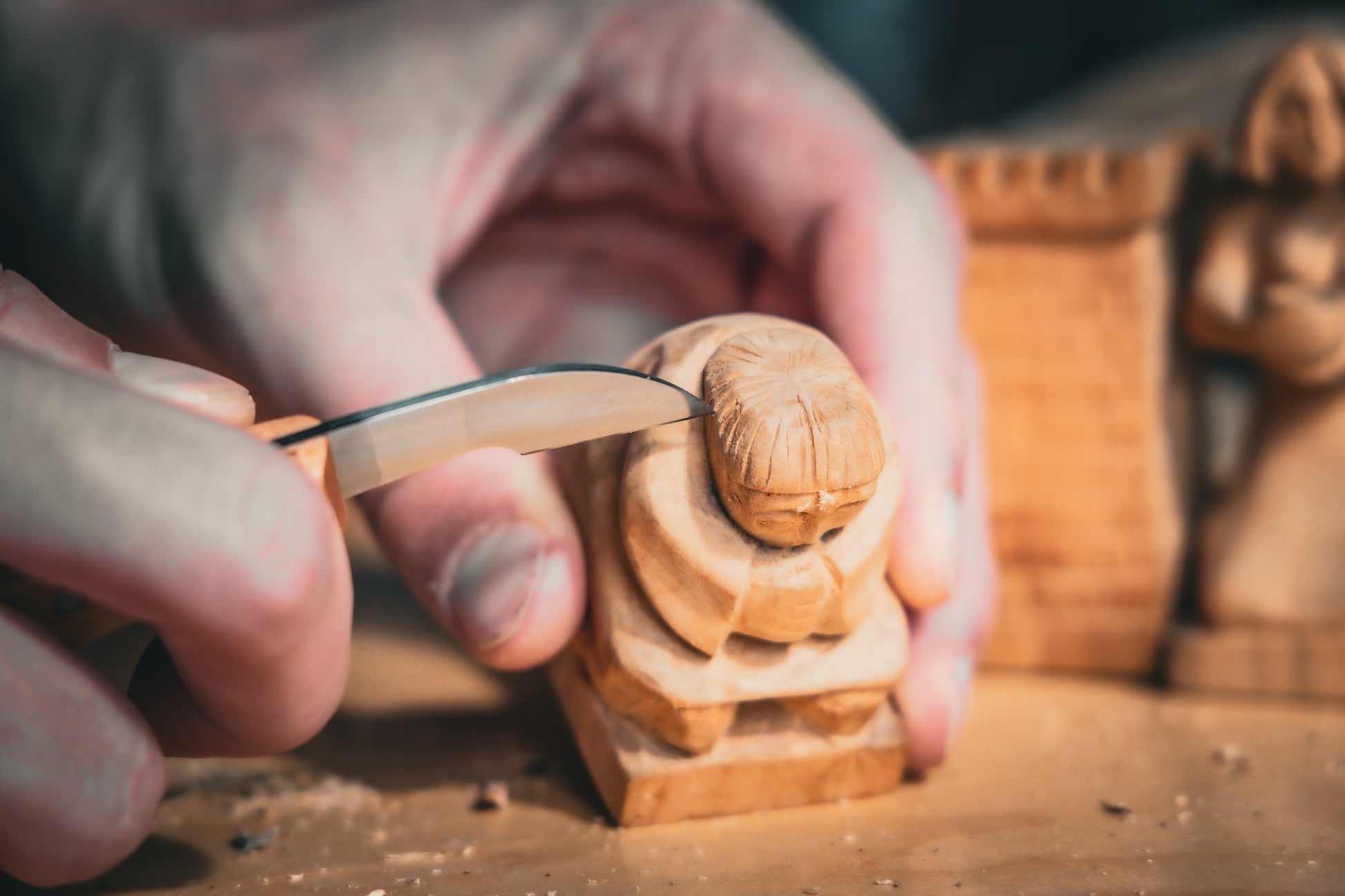 Die STUBAI Kerbschnitzmesser sind vielseitig verwendbare Werkzeuge, das für verschiedene Holzschnitzereien verwendet werden können. Sie eignen sich besonders gut für Holzarten wie Linde, Erle, Birnbaum, feinjährige Fichte und Zirbelkiefer mit gleichmäßiger Maserung. Der Artikel 5105 01 ist zudem sehr gut für die Veredelung von Rosen verwendar. Die Schnitzwerkzeuge überzeugen durch ihre besonders robuste Fertigung, die Langlebigkeit und beständige Schneidleistung gewährleisten. Die Kerbschnitzmesser können zum Herstellen von Linolschnitten, Reliefs, Intarsien (Einlegearbeiten) und figürlichem Schnitzen verwendet werden. Die Messer sind einfach zu handhaben und führen bei Hobbyschnitzern und Schnitzanfängern zu einem schnellen Lernerfolg. Auch Profi-Schnitzer schätzen die Qualität der Holzschnitzmesser. Die Klingen der Kerbschnitzmesser bestehen aus speziellem Kohlenstoffstahl, der in der modernen, werkseigenen Härterei auf 58-60 HRC wärmebehandelt wird. Dadurch sind maximale Stabilität und Haltbarkeit für ein präzises und zuverlässiges Schnitzen garantiert. Die Messer werden gebrauchsfertig auf 20 bis 30 Grad vorgeschliffen und können je nach Bedarf nachgeschärft werden. Mit den perfekt abgestimmten Formen und Größen ermöglicht es freihändiges Schnitzen von kleineren Figuren, Kerbschnitz- und Flechtarbeiten sowie die Gestaltung von Kreuzen, Madonnen, Engeln und Krippenfiguren. Der lange, handliche Griff der Messer aus lackiertem Buchenholz ermöglicht durch seine ergonomische Form ermüdungsfreies Arbeiten. Ob Sie als Hobby-Schnitzer Ihre ersten Werke kreieren oder als Profi wahre Meisterwerke erschaffen, die STUBAI Kerbschnitzmesser sind unverzichtbare Werkzeuge für jeden Holzliebhaber. Verlassen Sie sich auf die Qualität der Messer und lassen Sie Ihrer Kreativität freien Lauf. Entdecken Sie mit diesen hochwertigen und vielseitigen Kerbschnitzmessern von STUBAI die Welt der Holzbearbeitung und freuen Sie sich auf einen zuverlässigen Begleiter bei der Herstellung Ihrer handwerklichen Meisterwerke.