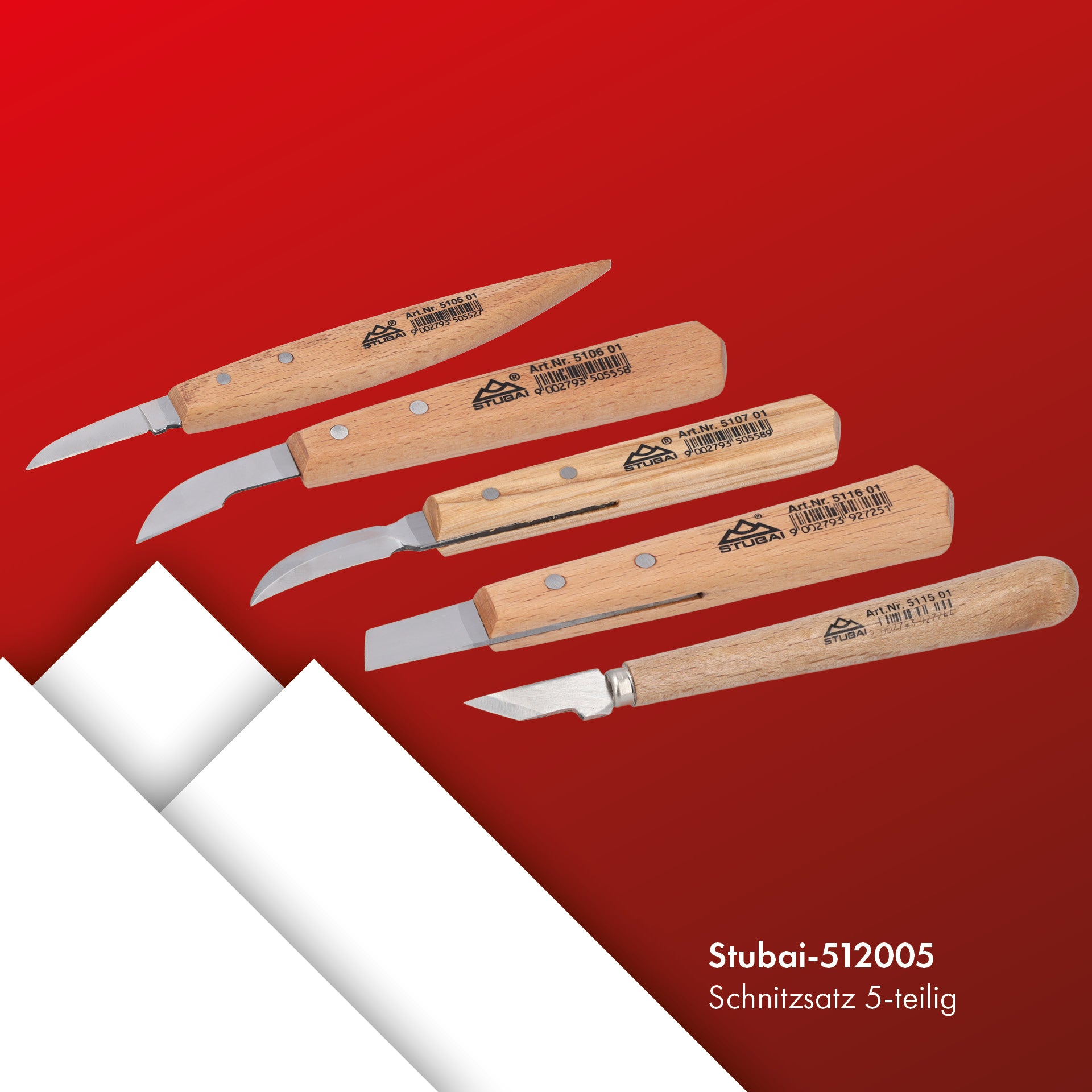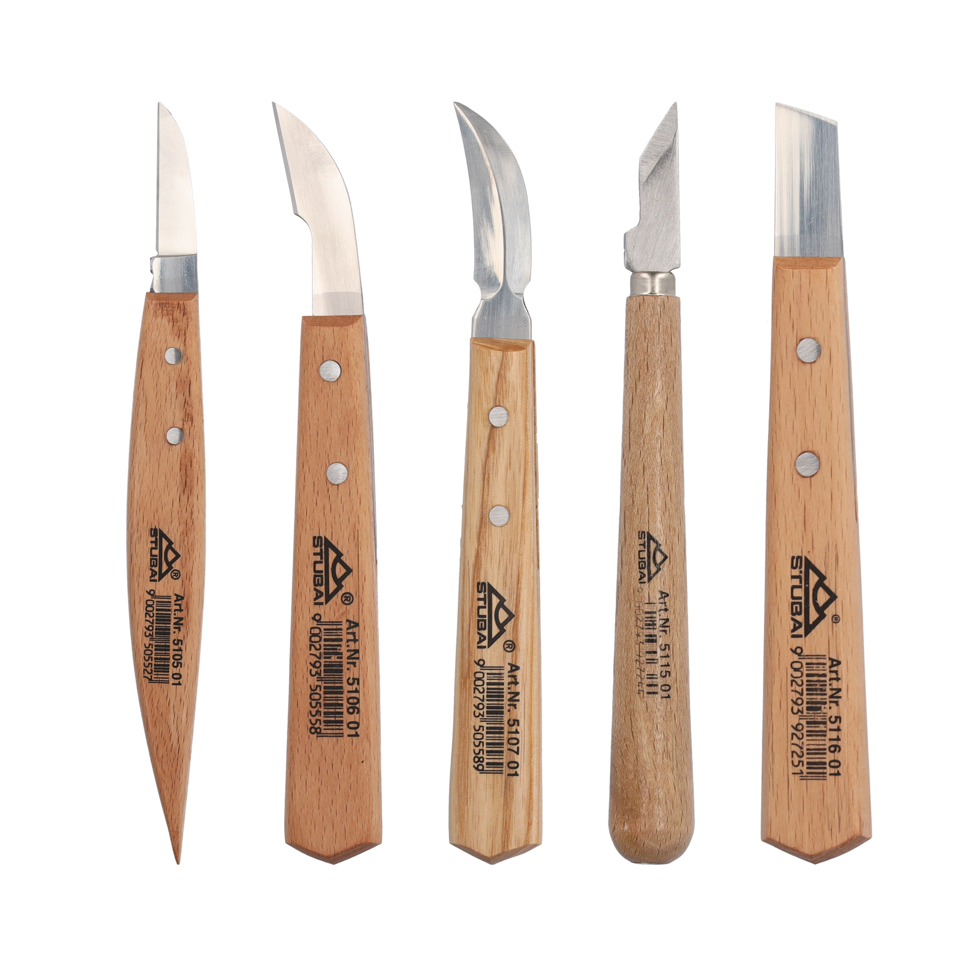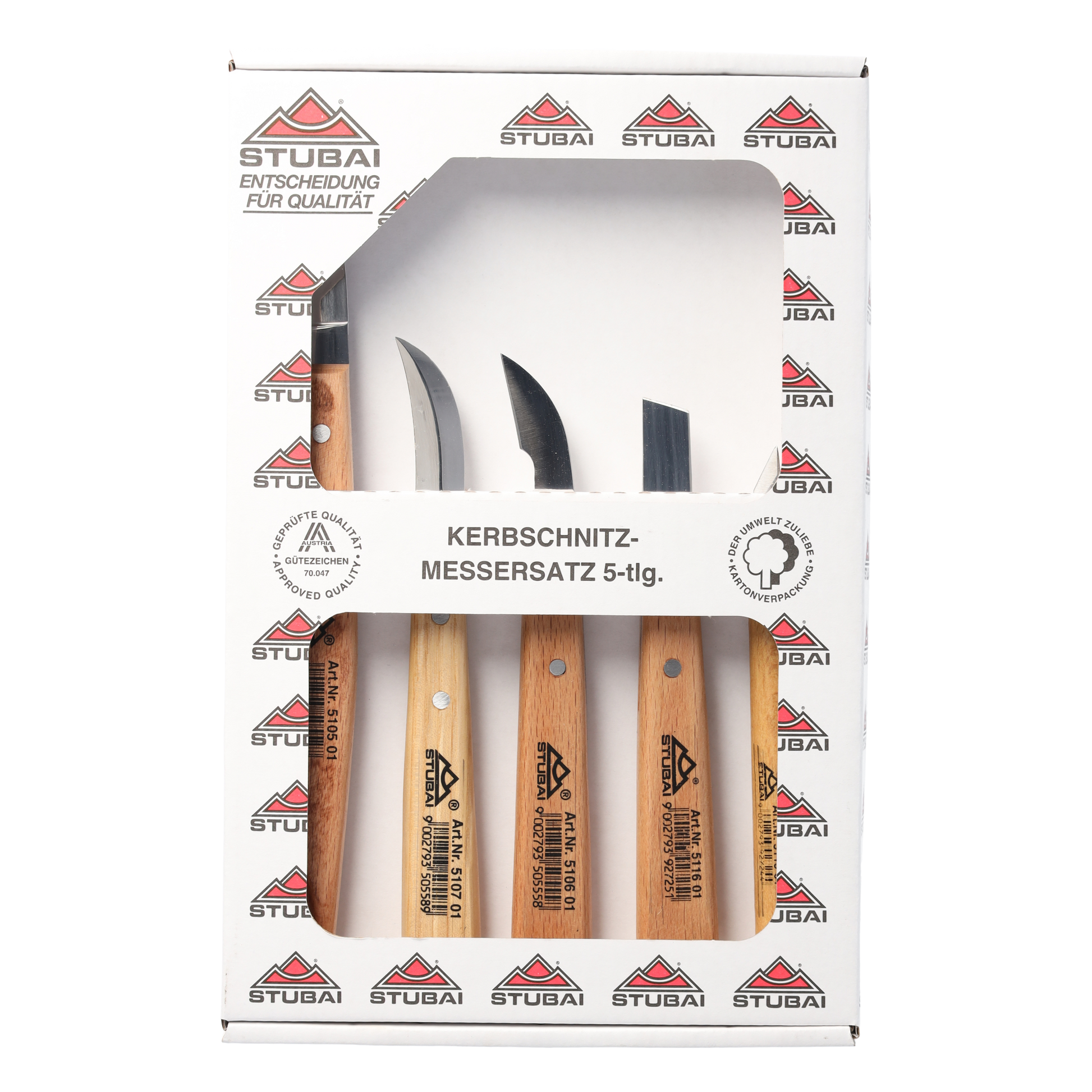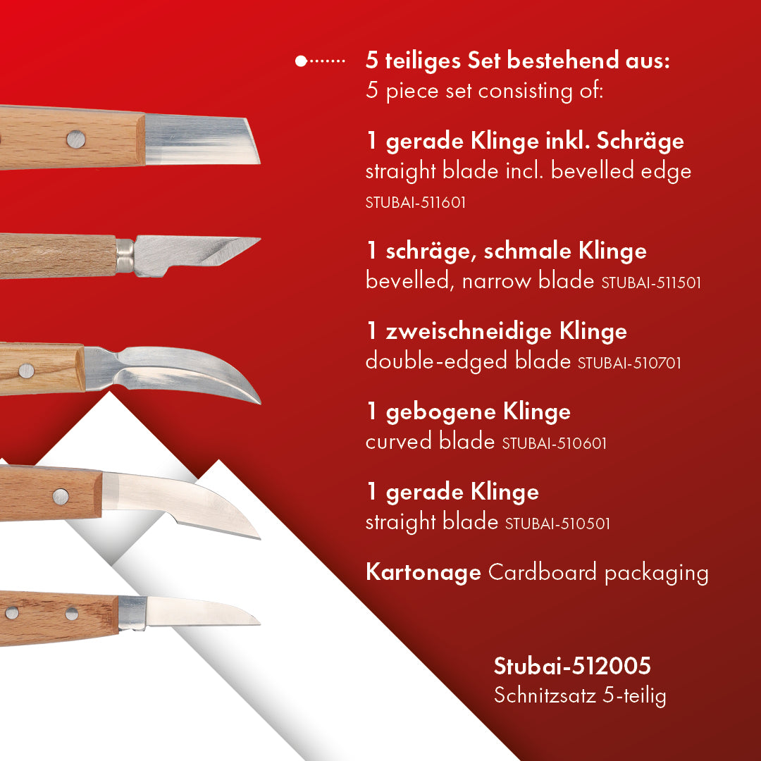 STUBAI Kerbschnitzmessersatz 5-teilig im Karton | Schnitzmesser mit Holzheft, Holzschnitzwerkzeug für feine Schnitzarbeiten, Holzbearbeitung, Schnitzwerkzeug