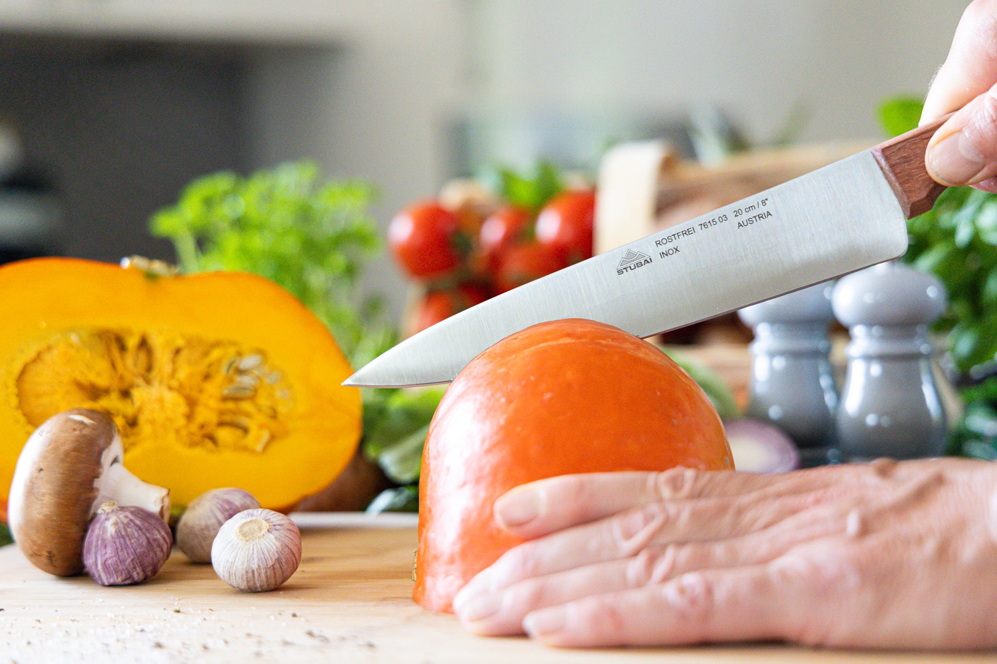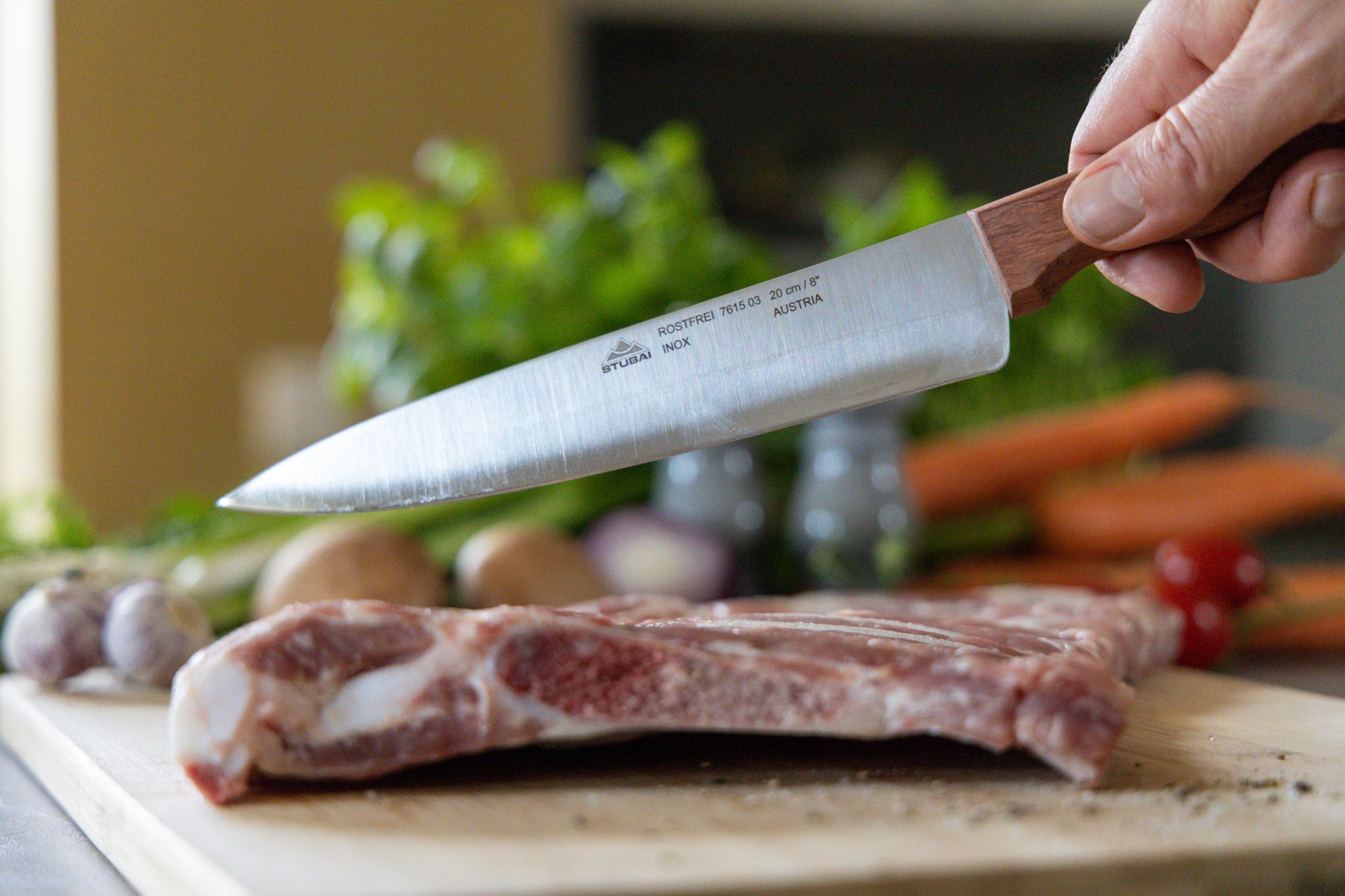 STUBAI Kochmesser mit Edelholzgriff,200 mm, scharfes Küchenmesser aus Edelstahl, rostfrei, spülmaschinenfest