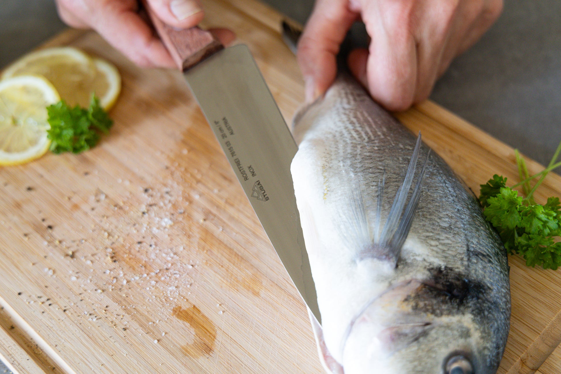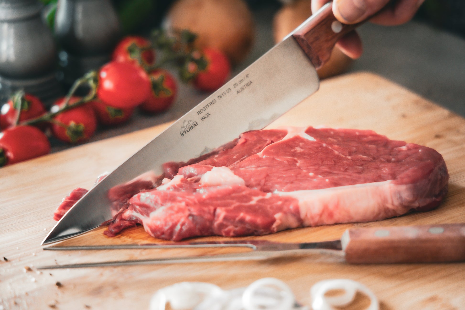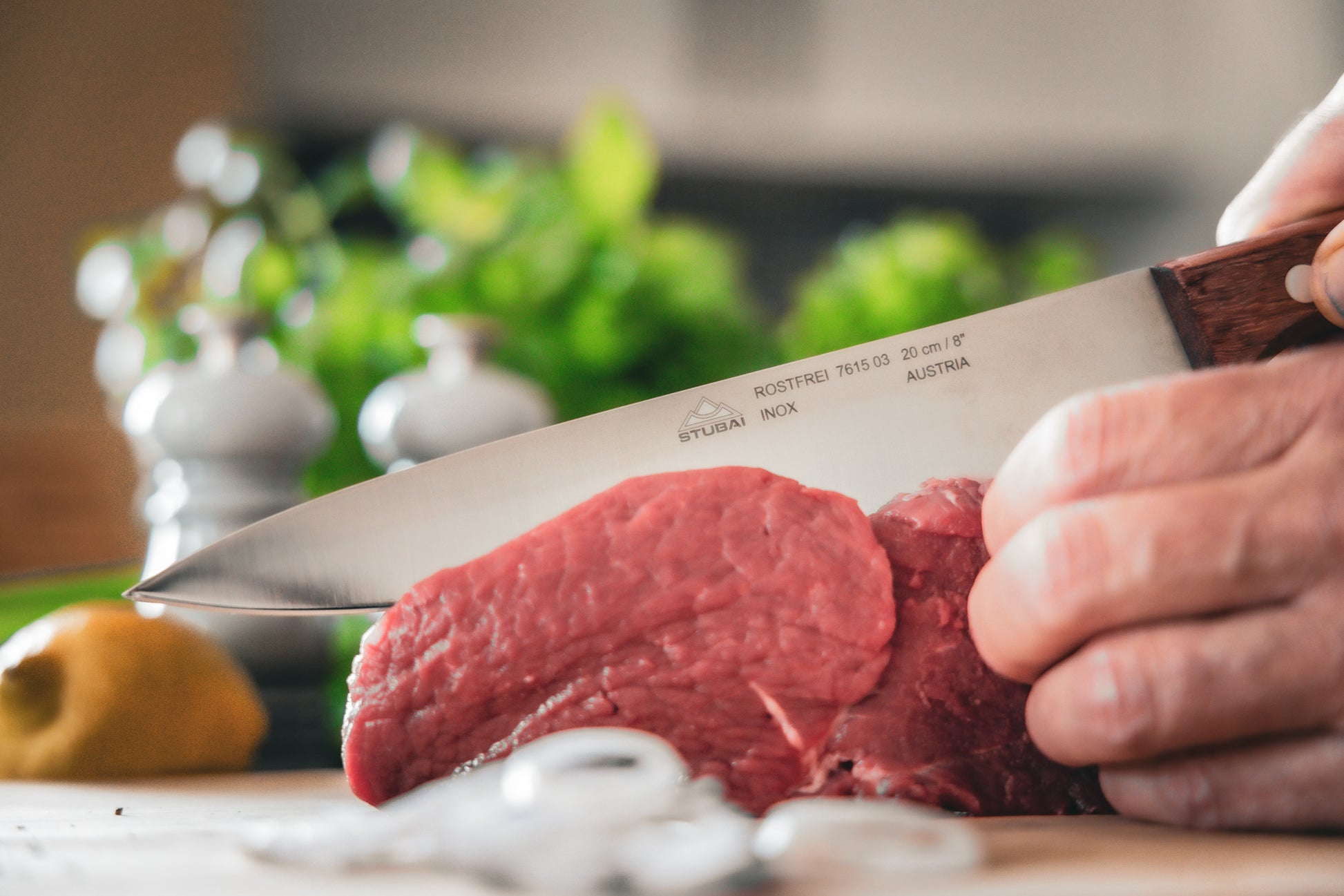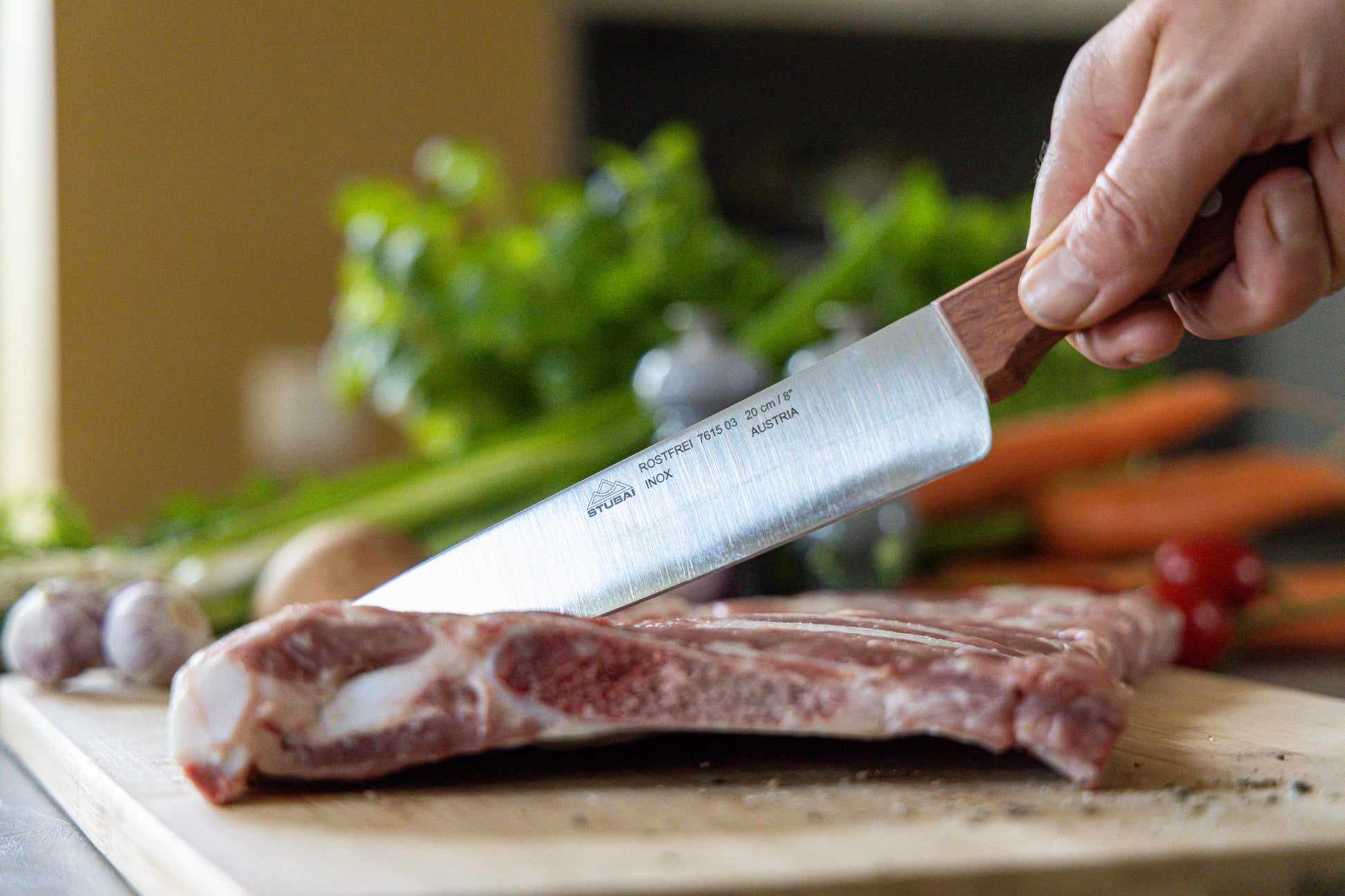Das STUBAI Kochmesser mit Edelholzgriff ist ein herausragendes Werkzeug für Profi- und Freizeitköche, die höchste Ansprüche an Schärfe, Stabilität und Langlebigkeit stellen. Mit seiner hochwertigen und scharfen Klinge aus rostfreiem Chrom-Molybdän-Edelstahl, die auf beeindruckende 55 HRC gehärtet ist, garantiert dieses Messer erstklassige Schneidergebnisse. Das Geheimnis seiner außergewöhnlichen Schneidleistung liegt in der fein ausgeschliffenen Klinge und in ihrer Spezialhärtung. Damit erzielen Sie mühelos saubere Schnitte und erhalten dabei die natürliche Frische und Qualität der Zutaten. Der ergonomisch geformte Griff aus hochwertigem Holz ist leicht zu reinigen und bietet eine rutschsichere Handhabung. Selbst bei längeren Einsätzen ermüden Ihre Hände nicht und Sie behalten die volle Kontrolle über das Messer. Der Griff ist fugendicht mit der Klinge verbunden und gewährleistet somit eine optimale Hygiene. Mit diesen Eigenschaften entspricht des STUBAI Fleischmesser den höchsten Standards für Lebensmittelsicherheit und Hygiene. Der spülmaschinenfeste Holzgriff lässt sich leicht reinigen, sodass Sie das Messer immer in einwandfreiem Zustand halten können. Kurz gesagt, das STUBAI Schneidmesser ist ein herausragendes Werkzeug für alle Profis und Hobbyköche, die Wert auf Präzision, Qualität und Zuverlässigkeit bei der effizienten Zubereitung von Lebensmitteln suchen.