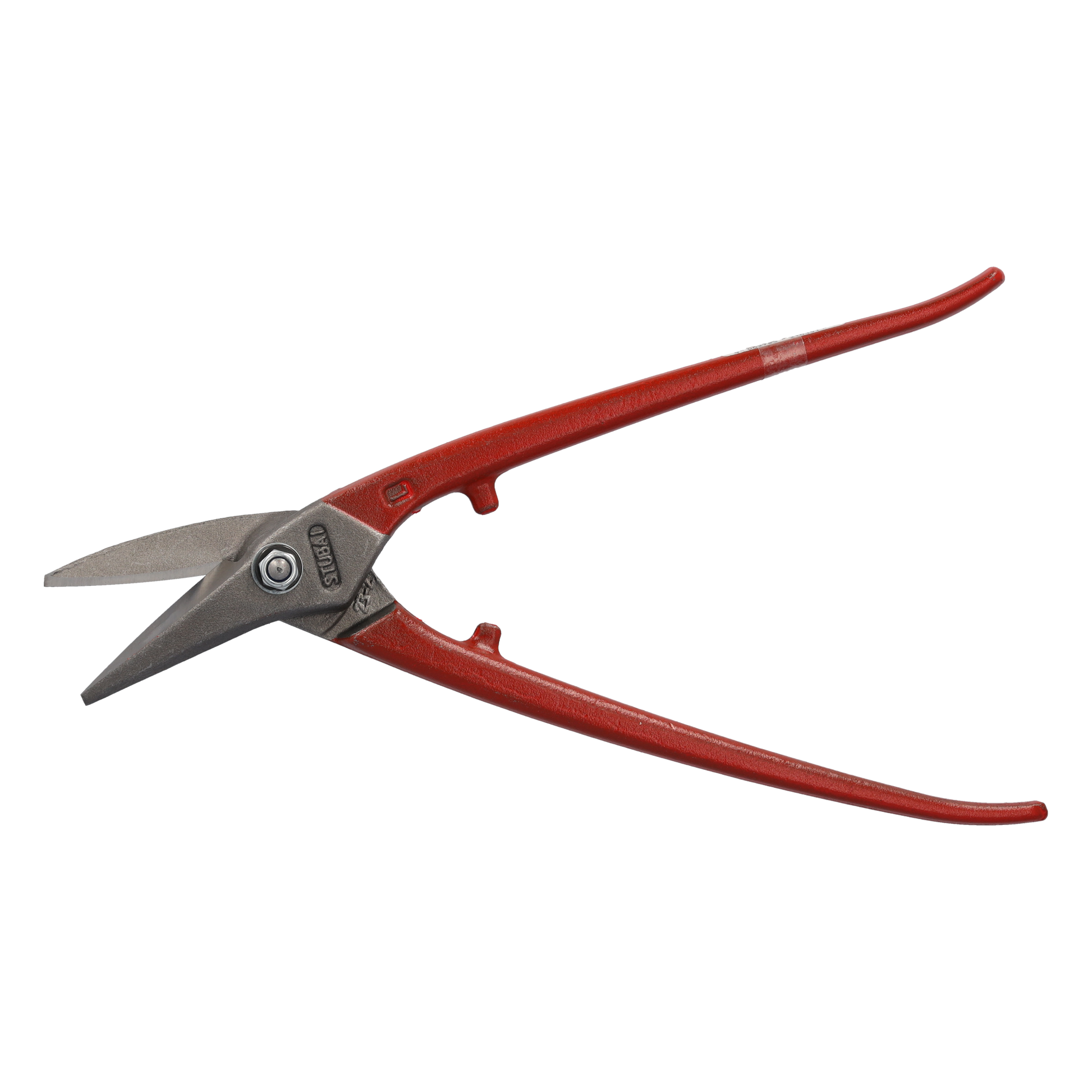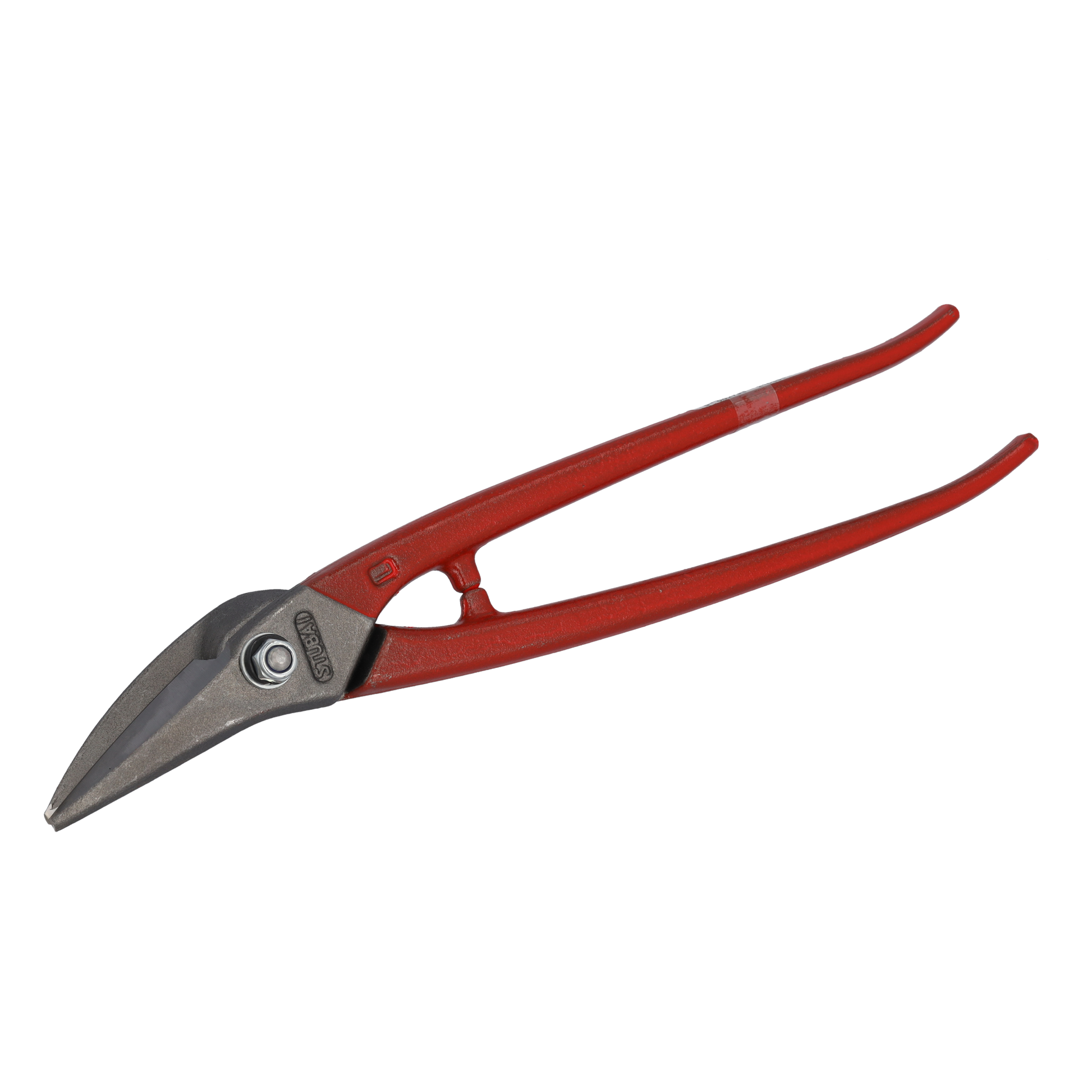 STUBAI KOMBI-BLECHSCHERE 280 mm linksschneidend – Spezialschere für Kurvenschnitte & lange Schnitte, polierter Kopf, Härte 60–62 HRC, Werkzeugstahl, rot kunststoffbeschichtet