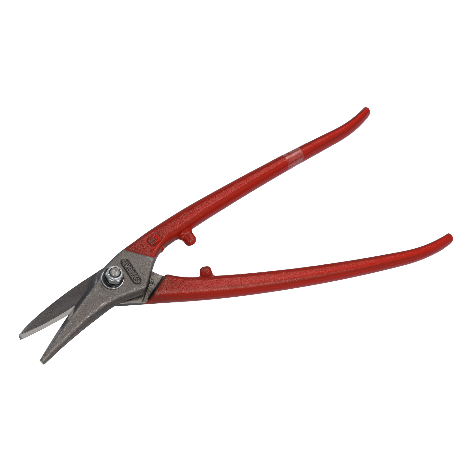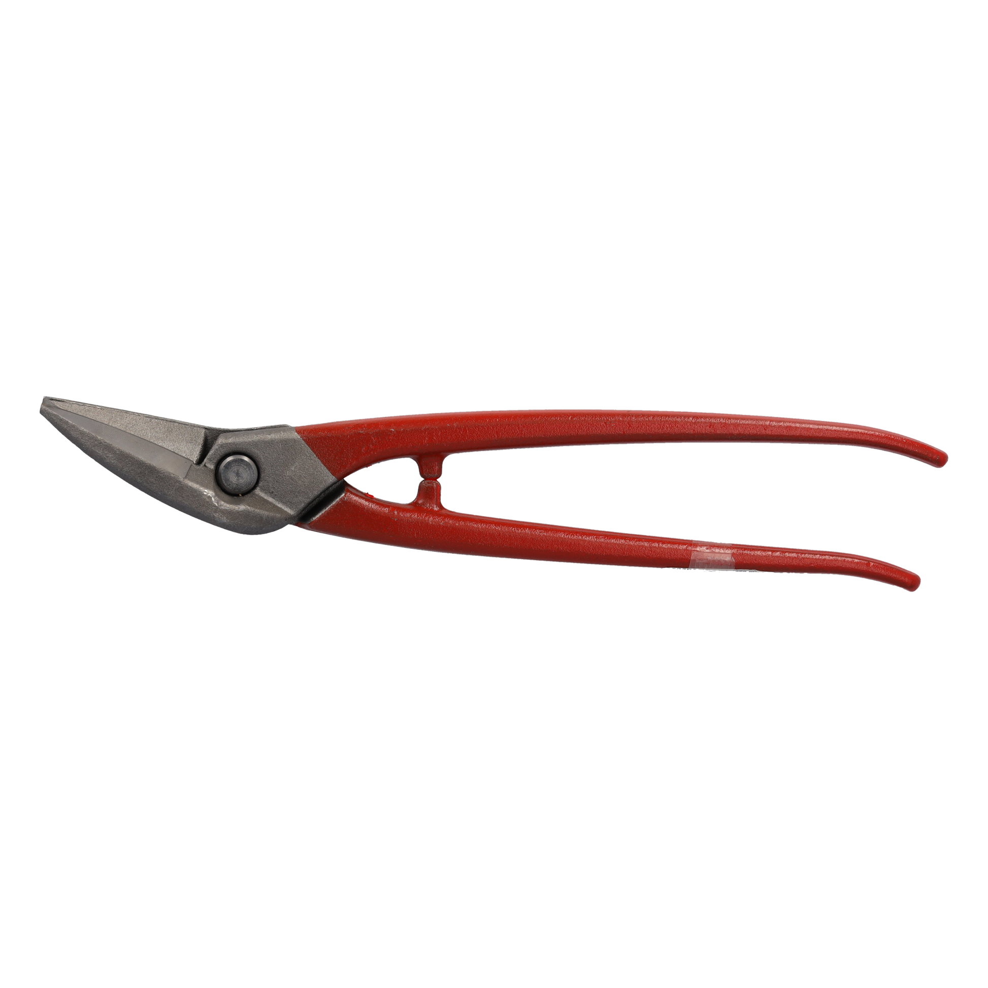 Spezialschere für präzise Kurvenschnitte und durchgehende Langschnitte – ideal für Blechbearbeitung im Handwerk oder auf der Baustelle.