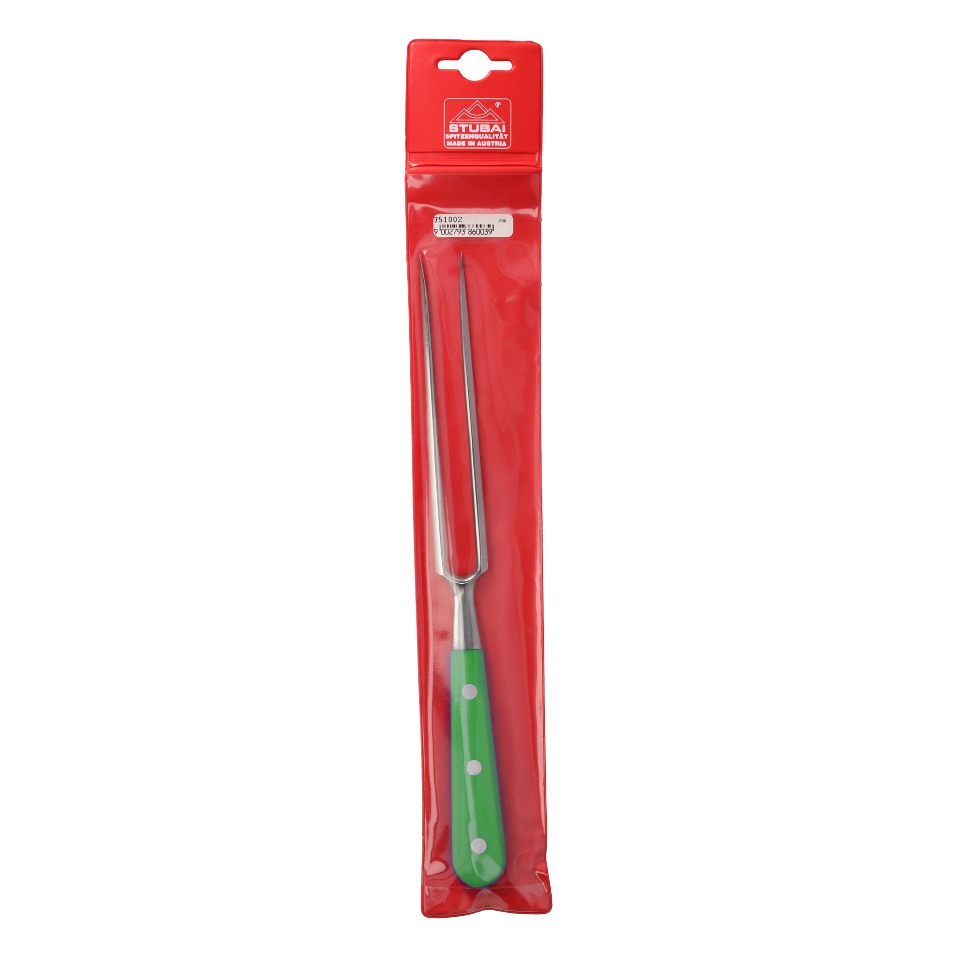Die STUBAI Tranchiergabel ist ein unverzichtbares Werkzeug für Profiköche und Hobbyküche gleichermaßen. Hergestellt aus hochwertigem, rostfreiem Chrom-Molybdän-Edelstahl bietet diese Gabel eine beeindruckende Härte von 55 HRC. Durch die Spezialhärtung wird eine maximale Stabilität und Langlebigkeit gewährleistet, wodurch sich anspruchsvolle Aufgaben auch langfristig mühelos erledigen lassen. Die Gabel ermöglicht ein leichtes Durchdringen von Geflügel, Gemüse, Fisch und Fleisch sowie anderen Lebensmitteln. Der ergonomische POM-Schutzgriff sorgt selbst bei längeren Einsatzzeiten für einen rutschsicheren Halt und für eine komfortable Handhabung. Der Griff ist spülmaschinenfest, speziell vernietet und verfügt über eine fugendichte Verschweißung mit der Klinge. Mit diesen Eigenschaften entspricht die Tranchiergabel den höchsten Standards für Lebensmittelsicherheit und Hygiene. Egal, ob Sie ein professioneller Koch sind oder einfach gerne in der Küche experimentieren, die STUBAI Küchengabel wird Ihr zuverlässiger Begleiter sein. Durch ihr hochwertiges Material wird sie zu einer perfekten Ergänzung in einer vollständigen Küchenausstattung. Entdecken Sie jetzt die Präzision und Qualität der STUBAI Tranchiergabel und erleben Sie das Vergnügen des Kochens auf einem neuen Niveau!