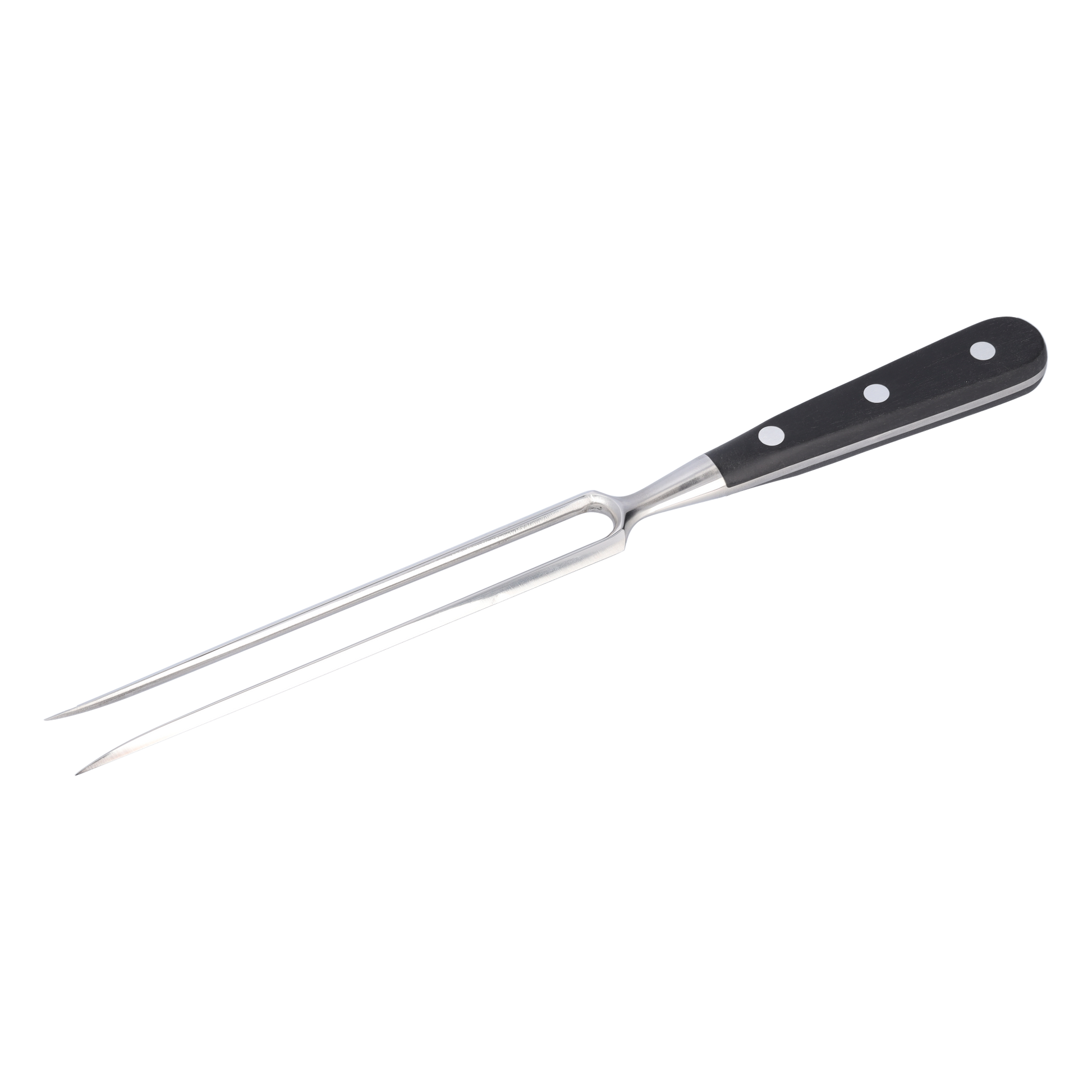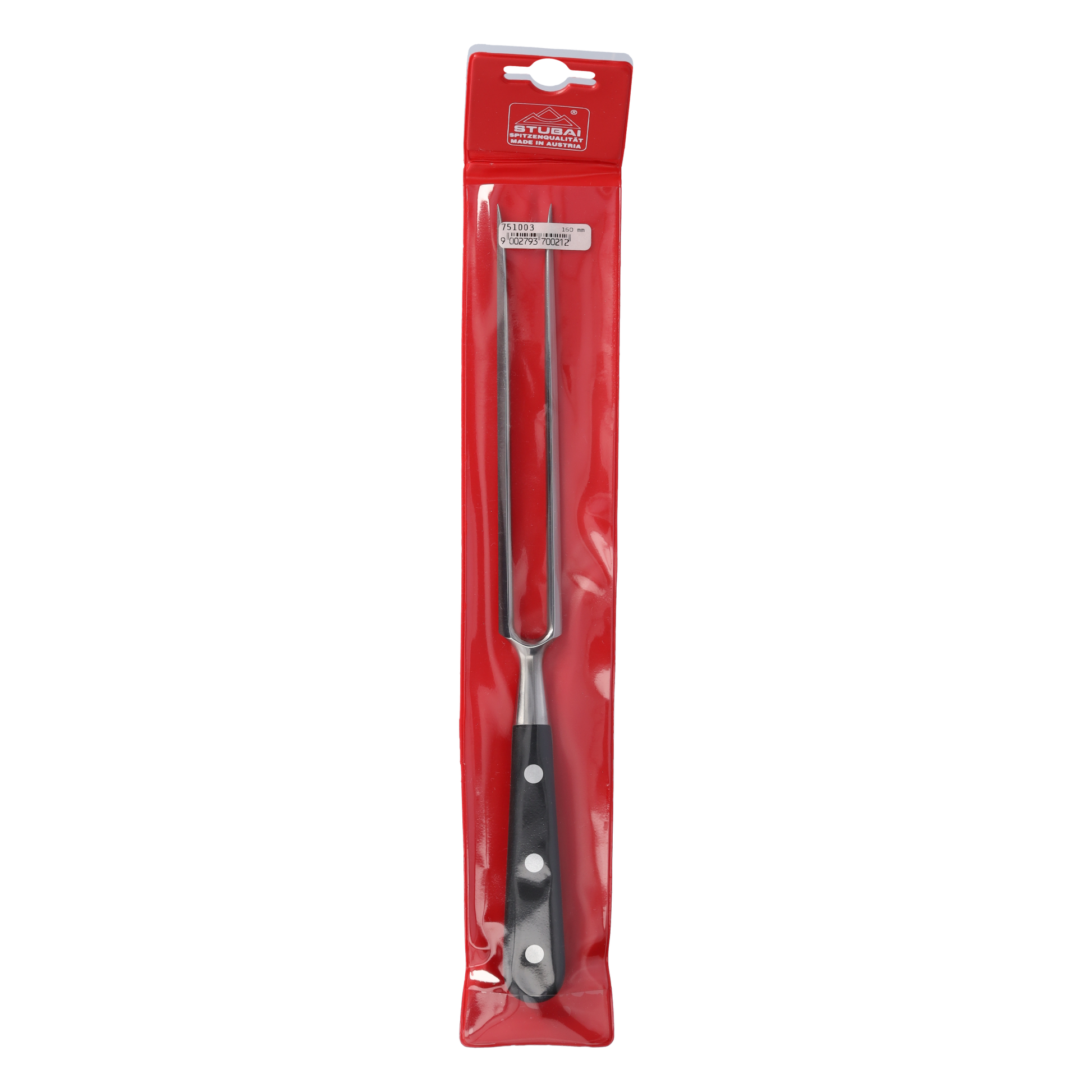 Die STUBAI Tranchiergabel ist ein unverzichtbares Werkzeug für Profiköche und Hobbyküche gleichermaßen. Hergestellt aus hochwertigem, rostfreiem Chrom-Molybdän-Edelstahl bietet diese Gabel eine beeindruckende Härte von 55 HRC. Durch die Spezialhärtung wird eine maximale Stabilität und Langlebigkeit gewährleistet, wodurch sich anspruchsvolle Aufgaben auch langfristig mühelos erledigen lassen. Die Gabel ermöglicht ein leichtes Durchdringen von Geflügel, Gemüse, Fisch und Fleisch sowie anderen Lebensmitteln. Der ergonomische POM-Schutzgriff sorgt selbst bei längeren Einsatzzeiten für einen rutschsicheren Halt und für eine komfortable Handhabung. Der Griff ist spülmaschinenfest, speziell vernietet und verfügt über eine fugendichte Verschweißung mit der Klinge. Mit diesen Eigenschaften entspricht die Tranchiergabel den höchsten Standards für Lebensmittelsicherheit und Hygiene. Egal, ob Sie ein professioneller Koch sind oder einfach gerne in der Küche experimentieren, die STUBAI Küchengabel wird Ihr zuverlässiger Begleiter sein. Durch ihr hochwertiges Material wird sie zu einer perfekten Ergänzung in einer vollständigen Küchenausstattung. Entdecken Sie jetzt die Präzision und Qualität der STUBAI Tranchiergabel und erleben Sie das Vergnügen des Kochens auf einem neuen Niveau!
