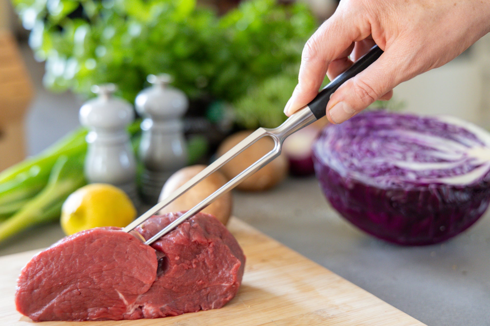 Die STUBAI Tranchiergabel ist ein unverzichtbares Werkzeug für Profiköche und Hobbyküche gleichermaßen. Hergestellt aus hochwertigem, rostfreiem Chrom-Molybdän-Edelstahl bietet diese Gabel eine beeindruckende Härte von 55 HRC. Durch die Spezialhärtung wird eine maximale Stabilität und Langlebigkeit gewährleistet, wodurch sich anspruchsvolle Aufgaben auch langfristig mühelos erledigen lassen. Die Gabel ermöglicht ein leichtes Durchdringen von Geflügel, Gemüse, Fisch und Fleisch sowie anderen Lebensmitteln. Der ergonomische POM-Schutzgriff sorgt selbst bei längeren Einsatzzeiten für einen rutschsicheren Halt und für eine komfortable Handhabung. Der Griff ist spülmaschinenfest, speziell vernietet und verfügt über eine fugendichte Verschweißung mit der Klinge. Mit diesen Eigenschaften entspricht die Tranchiergabel den höchsten Standards für Lebensmittelsicherheit und Hygiene. Egal, ob Sie ein professioneller Koch sind oder einfach gerne in der Küche experimentieren, die STUBAI Küchengabel wird Ihr zuverlässiger Begleiter sein. Durch ihr hochwertiges Material wird sie zu einer perfekten Ergänzung in einer vollständigen Küchenausstattung. Entdecken Sie jetzt die Präzision und Qualität der STUBAI Tranchiergabel und erleben Sie das Vergnügen des Kochens auf einem neuen Niveau!
