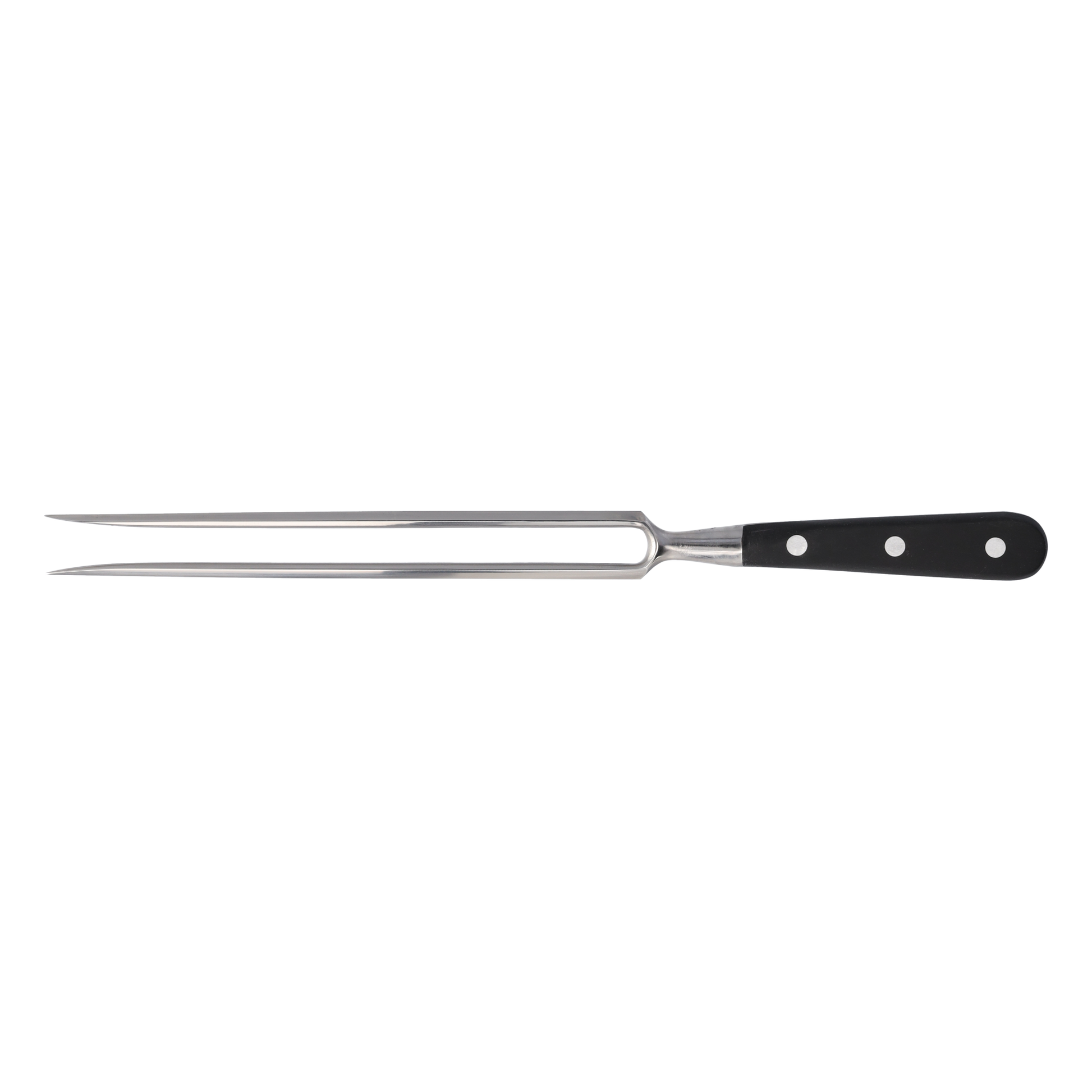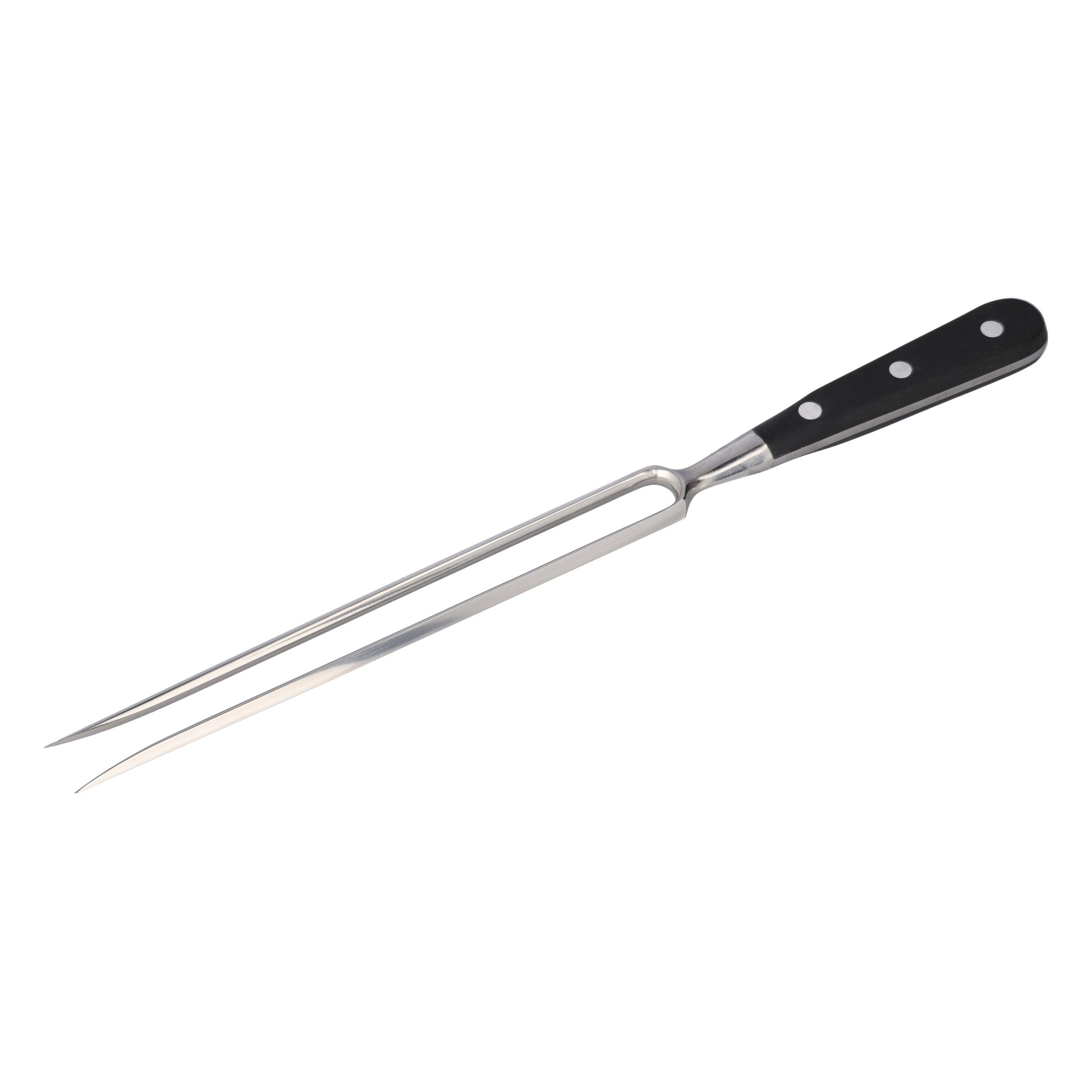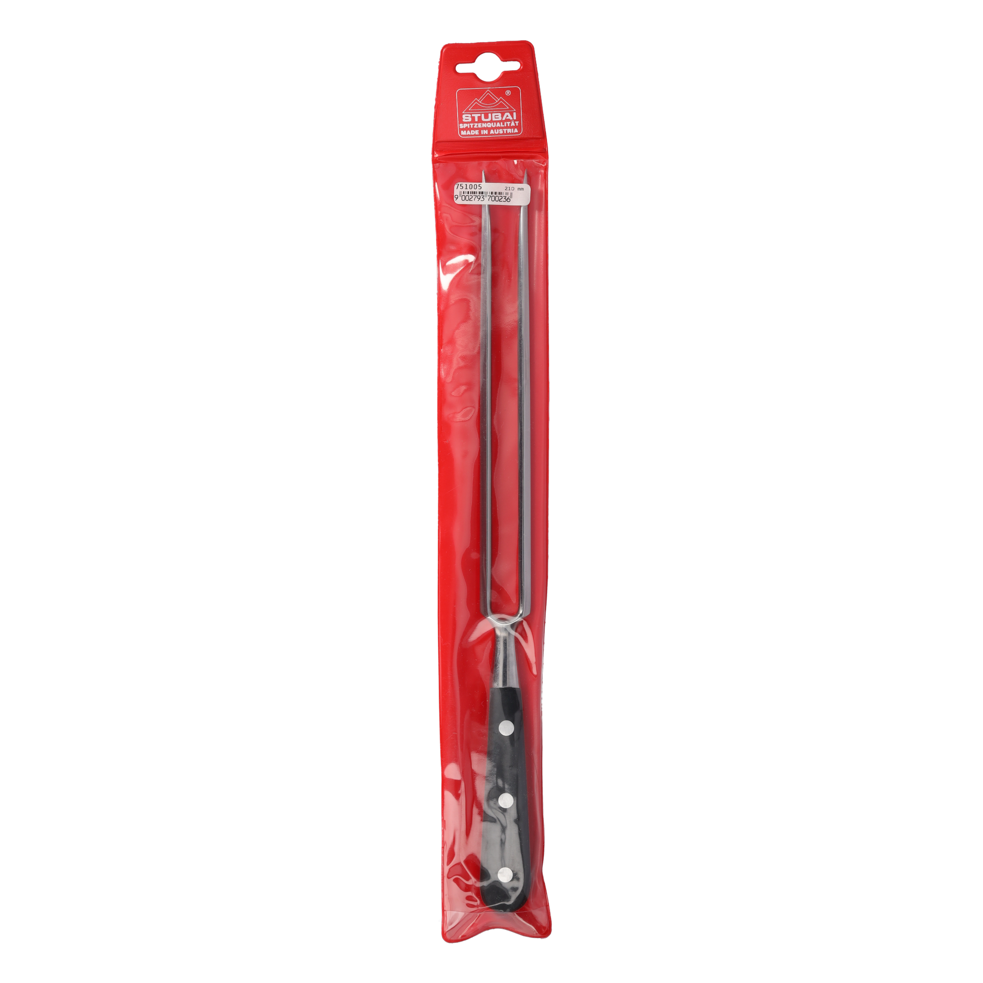 Die STUBAI Tranchiergabel ist ein unverzichtbares Werkzeug für Profiköche und Hobbyküche gleichermaßen. Hergestellt aus hochwertigem, rostfreiem Chrom-Molybdän-Edelstahl bietet diese Gabel eine beeindruckende Härte von 55 HRC. Durch die Spezialhärtung wird eine maximale Stabilität und Langlebigkeit gewährleistet, wodurch sich anspruchsvolle Aufgaben auch langfristig mühelos erledigen lassen. Die Gabel ermöglicht ein leichtes Durchdringen von Geflügel, Gemüse, Fisch und Fleisch sowie anderen Lebensmitteln. Der ergonomische POM-Schutzgriff sorgt selbst bei längeren Einsatzzeiten für einen rutschsicheren Halt und für eine komfortable Handhabung. Der Griff ist spülmaschinenfest, speziell vernietet und verfügt über eine fugendichte Verschweißung mit der Klinge. Mit diesen Eigenschaften entspricht die Tranchiergabel den höchsten Standards für Lebensmittelsicherheit und Hygiene. Egal, ob Sie ein professioneller Koch sind oder einfach gerne in der Küche experimentieren, die STUBAI Küchengabel wird Ihr zuverlässiger Begleiter sein. Durch ihr hochwertiges Material wird sie zu einer perfekten Ergänzung in einer vollständigen Küchenausstattung. Entdecken Sie jetzt die Präzision und Qualität der STUBAI Tranchiergabel und erleben Sie das Vergnügen des Kochens auf einem neuen Niveau!