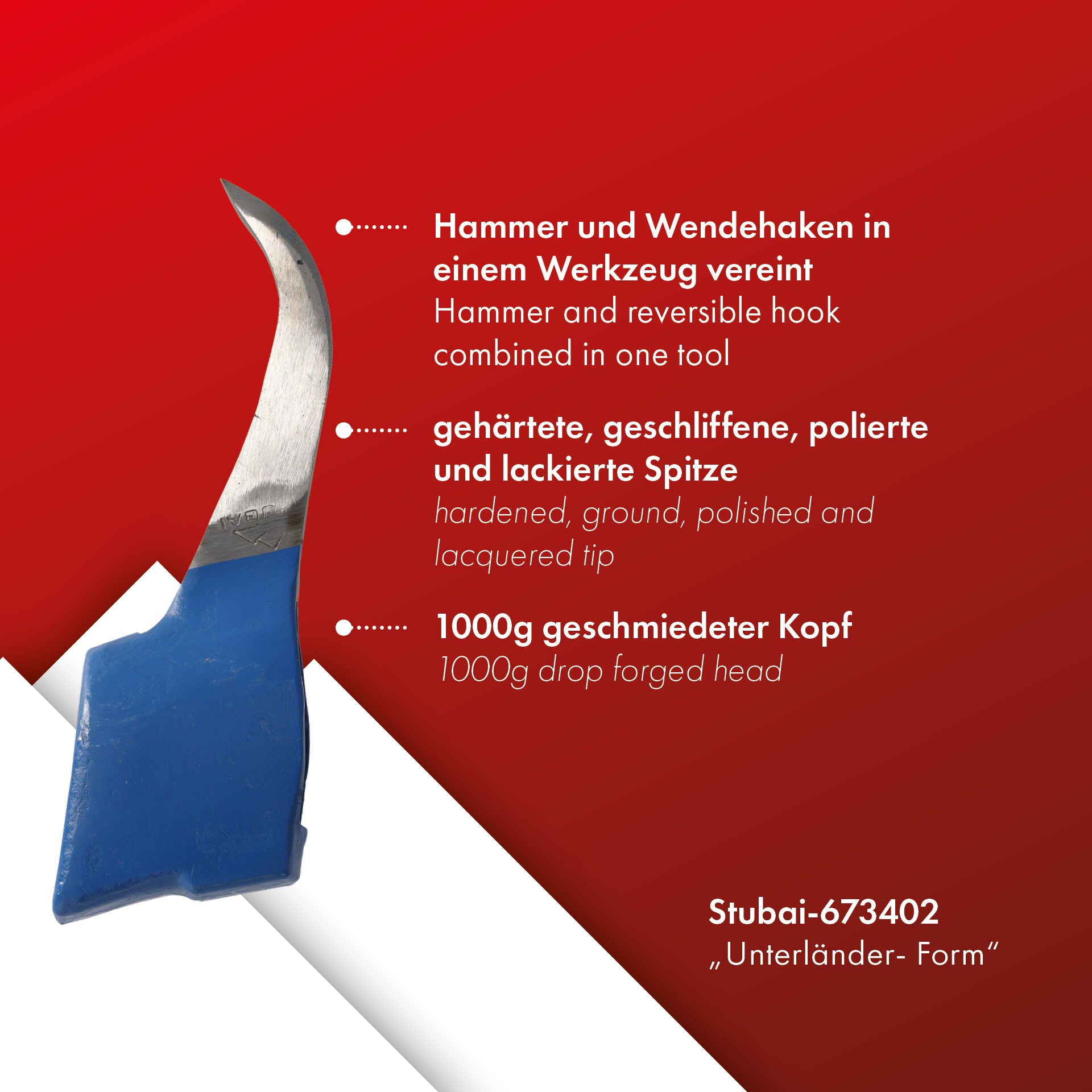 STUBAI Sappie-Kopf Unterländer-Form | 1000 g Kopfgewicht | Sappel ohne Stiel | gesenkgeschmiedet, Spitze gehärtet, geschliffen, poliert | zum Ziehen und Bewegen von Holzstücken