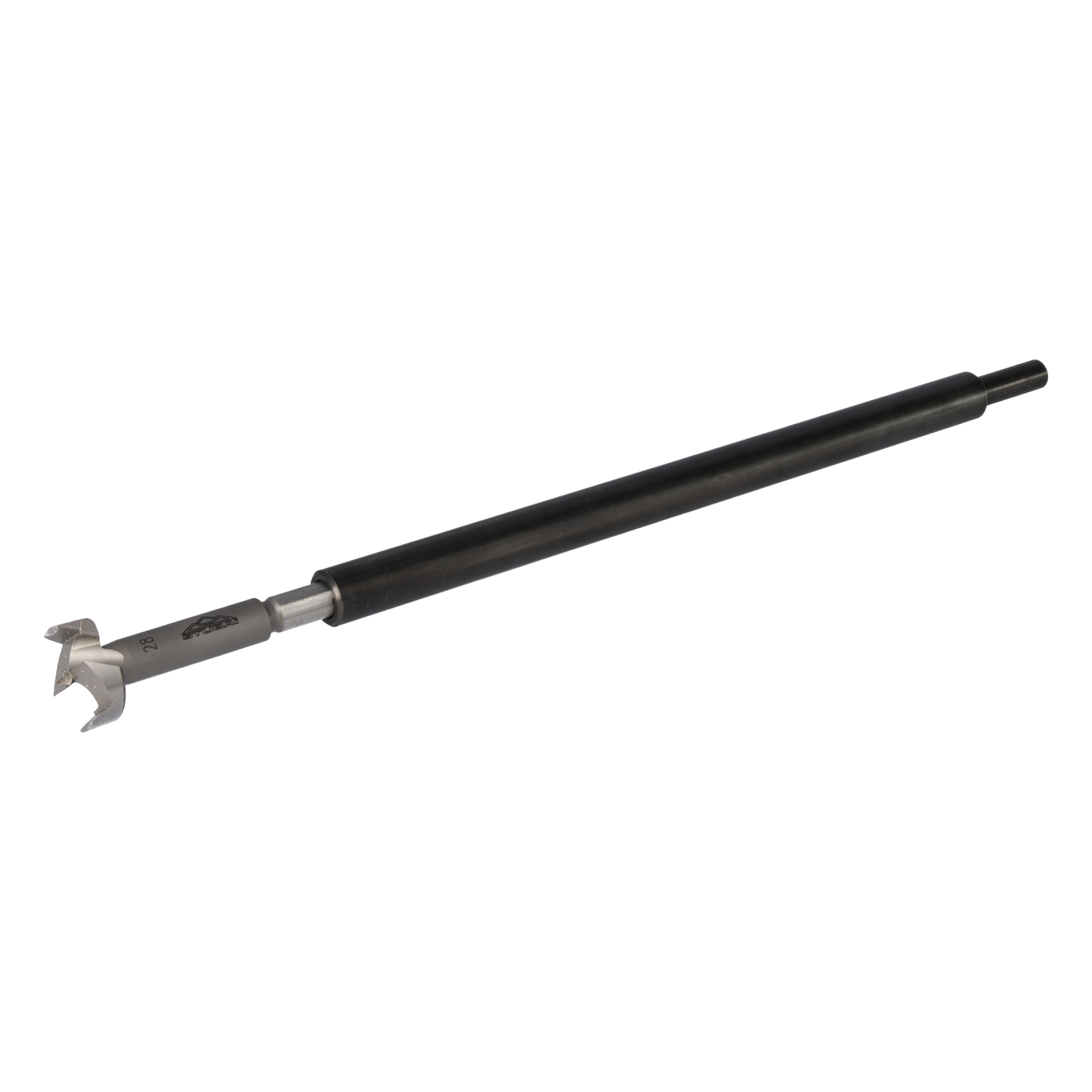 Die Ausführung ist solide, mit gutem Rundlauf hat eine brünierte Oberfläche und verfügt über eine stirnseitige Bohrung sowie 3 Gewindestifte, um den Bohrer festzuschrauben und um eine sichere Werkzeugaufnahme zu gewährleisten. Die Maschinenaufnahme hat einen Durchmesser von 10 mm eine Länge von 150mm Die Aufnahme für den Bohrer beträgt innen 10mm. Die Verlängerung ist geeignet, um Zylinderkopfbohrer oder Werkzeuge mit Schaftdurchmessern vom 8mm aufzunehmen und zu verlängern . Bitte beachten Sie den inneren Durchmesser (I-Ø) bei der Bestellung. Diese Verlängerung ist besonders ideal für Tieflochbohrungen, auch beim Drechseln.