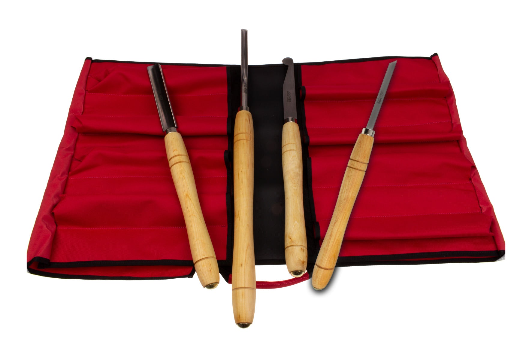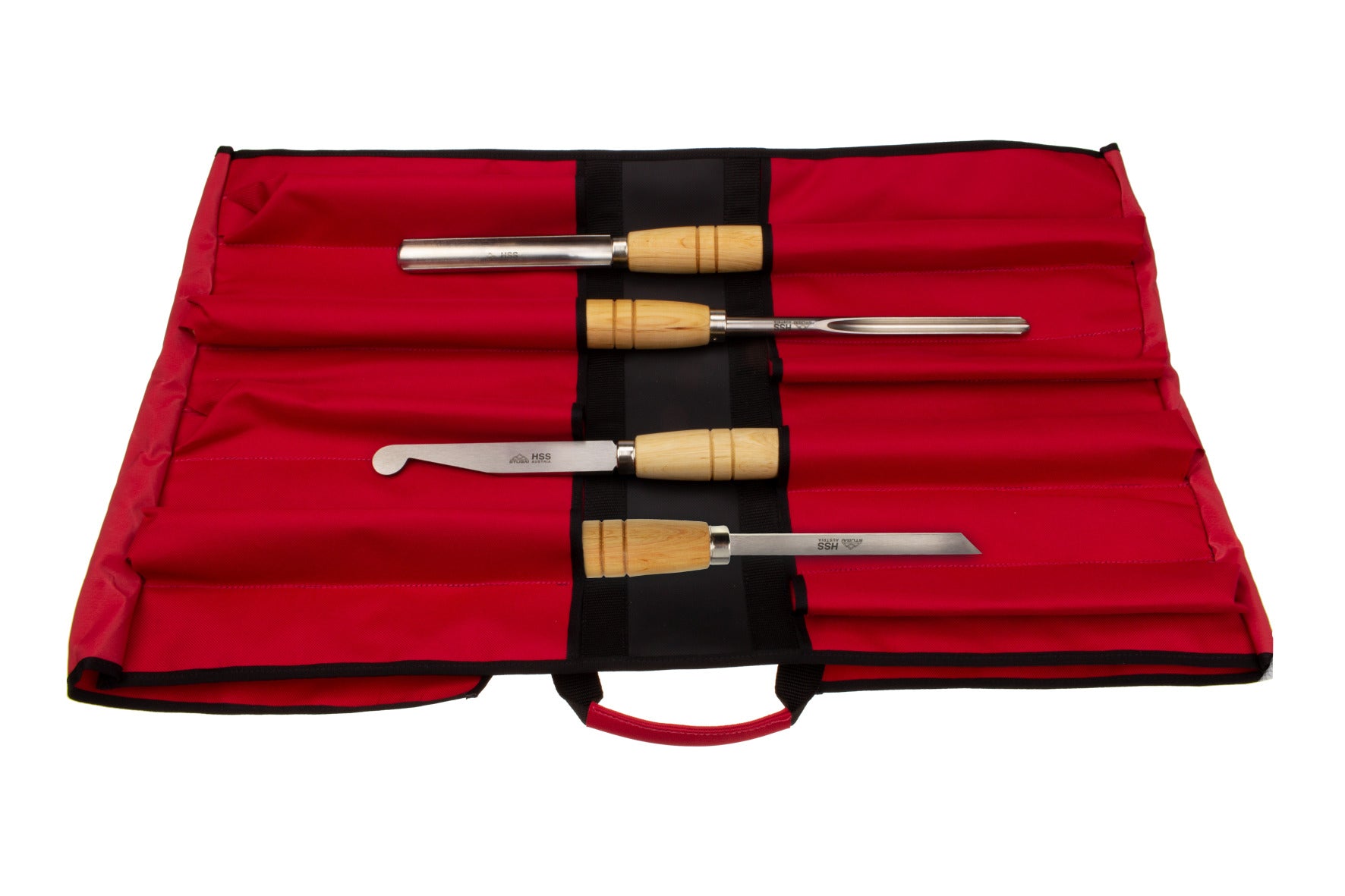 STUBAI Drechselset 4-tlg. Grundausstattung – HSS Formröhre, Schüssel-Drehröhre, Ausdrehstahl, Abstecher – Rolltasche 5000R2 – Profiwerkzeug für Drechsler