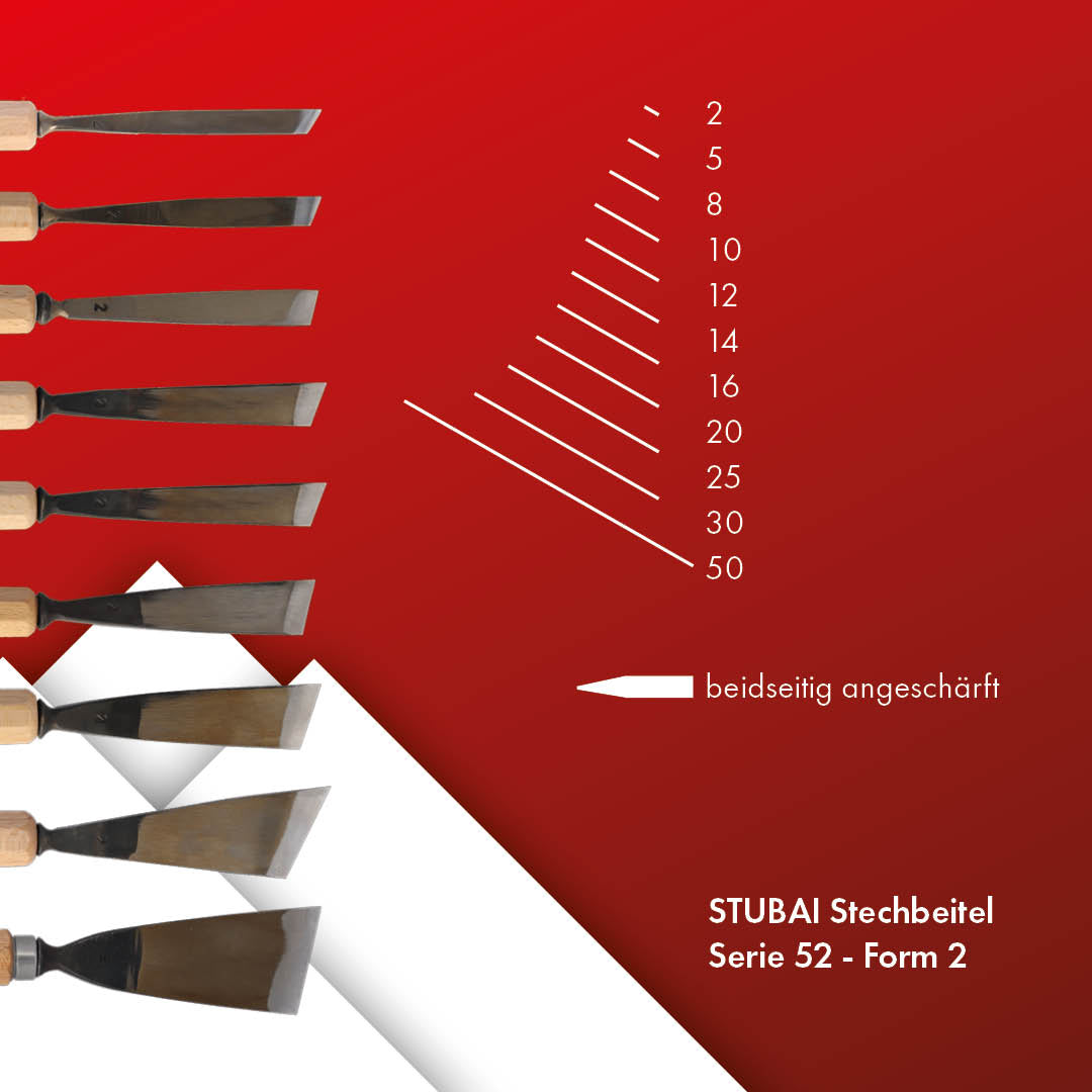 STUBAI Stemmeisen Stechbeitel Serie 52 - Form 2 | Gerades Balleisen, schräg - 40 mm, mit Holzgriff, für glatte Flächen, zum Vorstechen, Kerb- und Reliefschnitzarbeiten, zur Bearbeitung von Holz