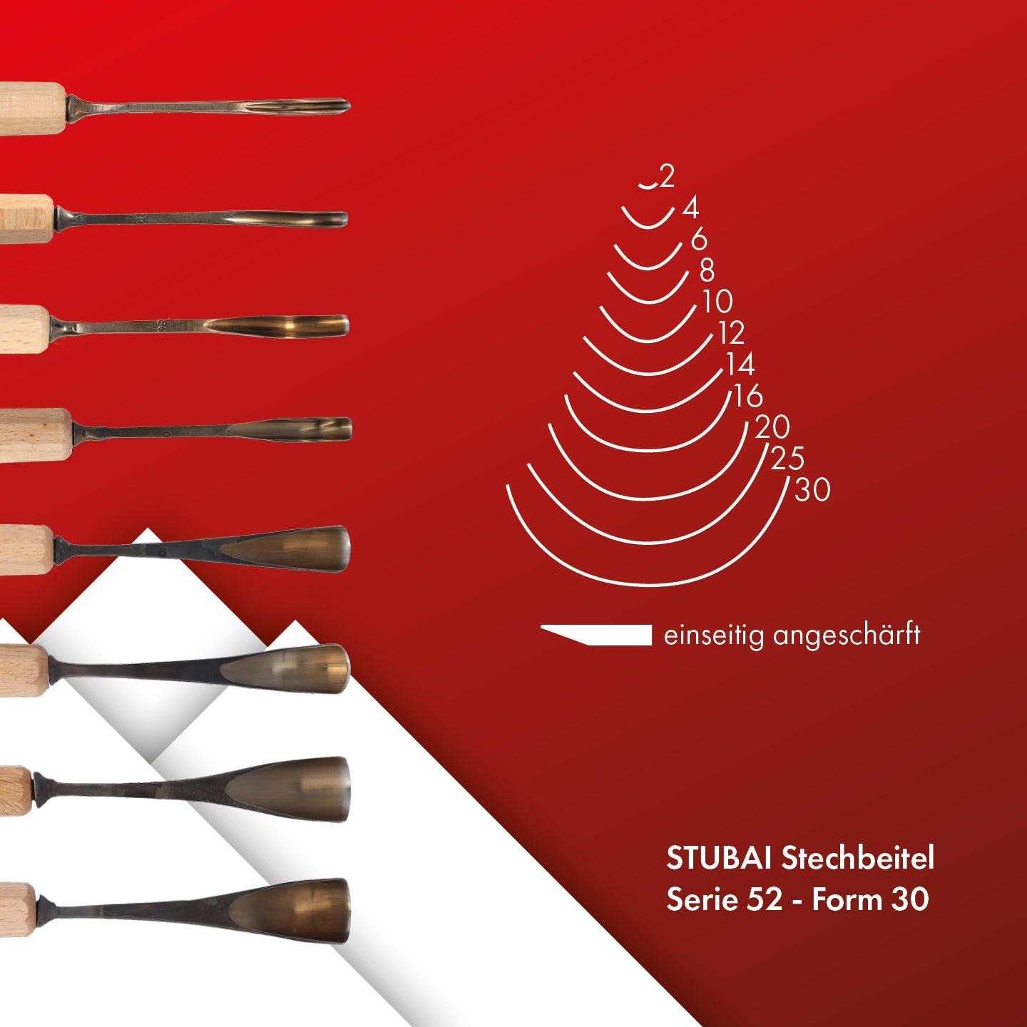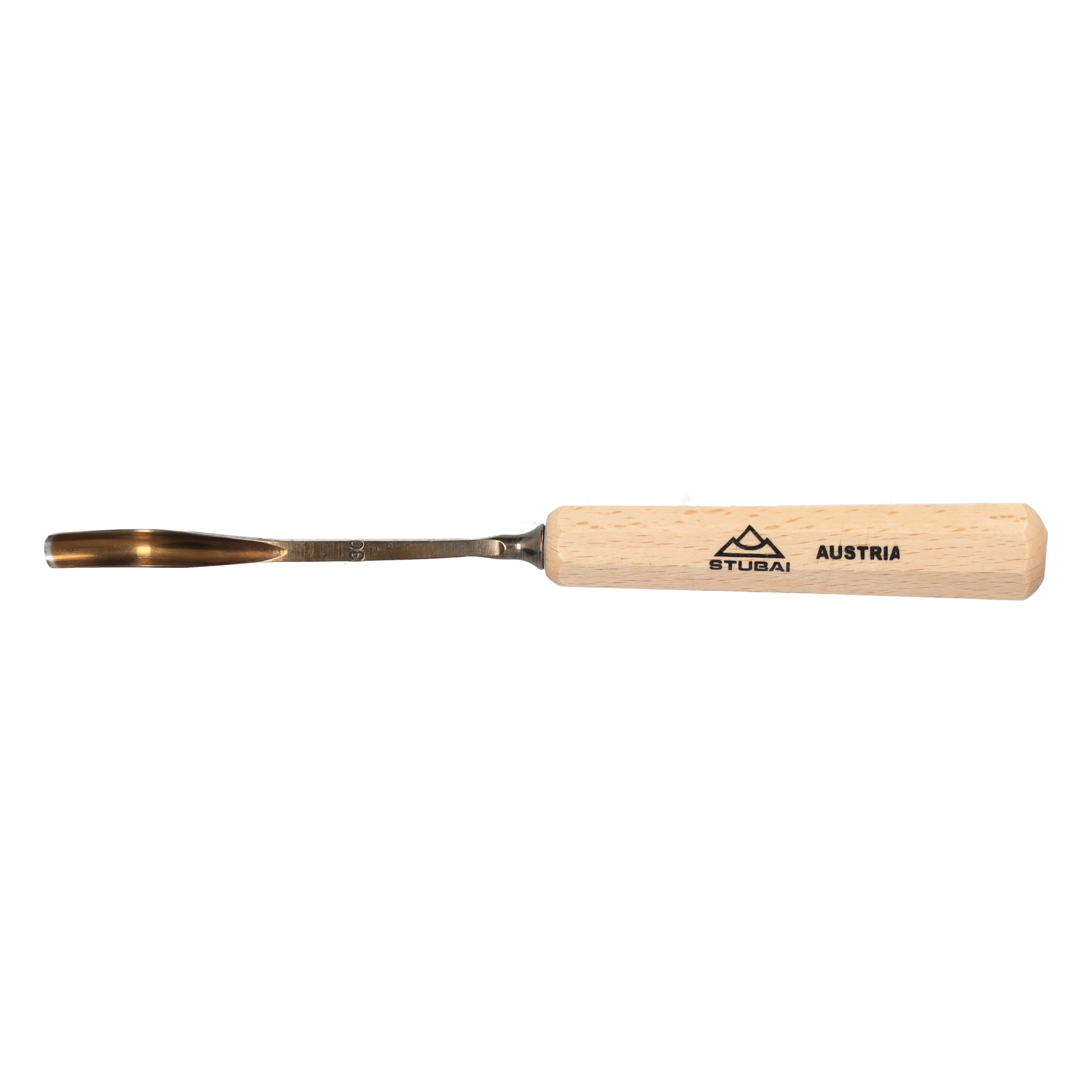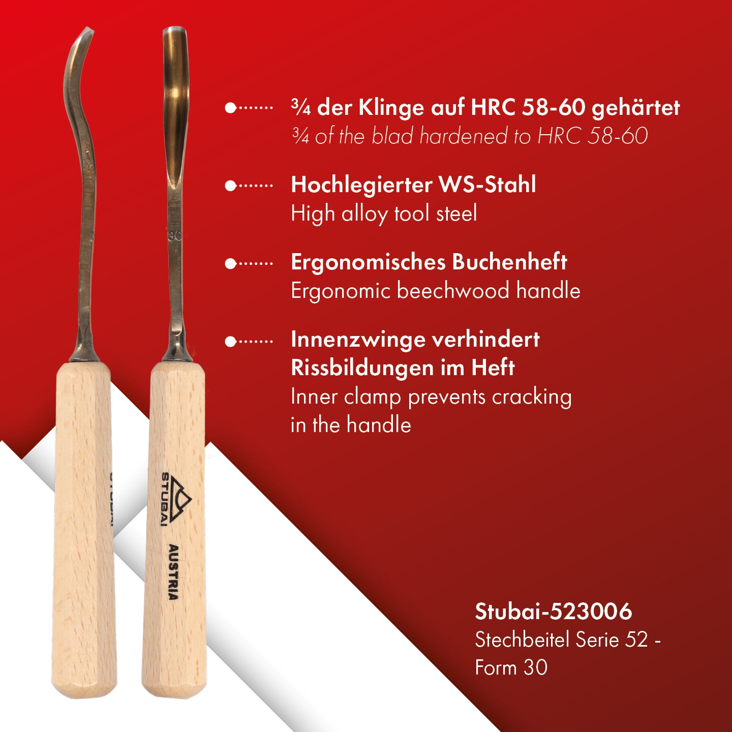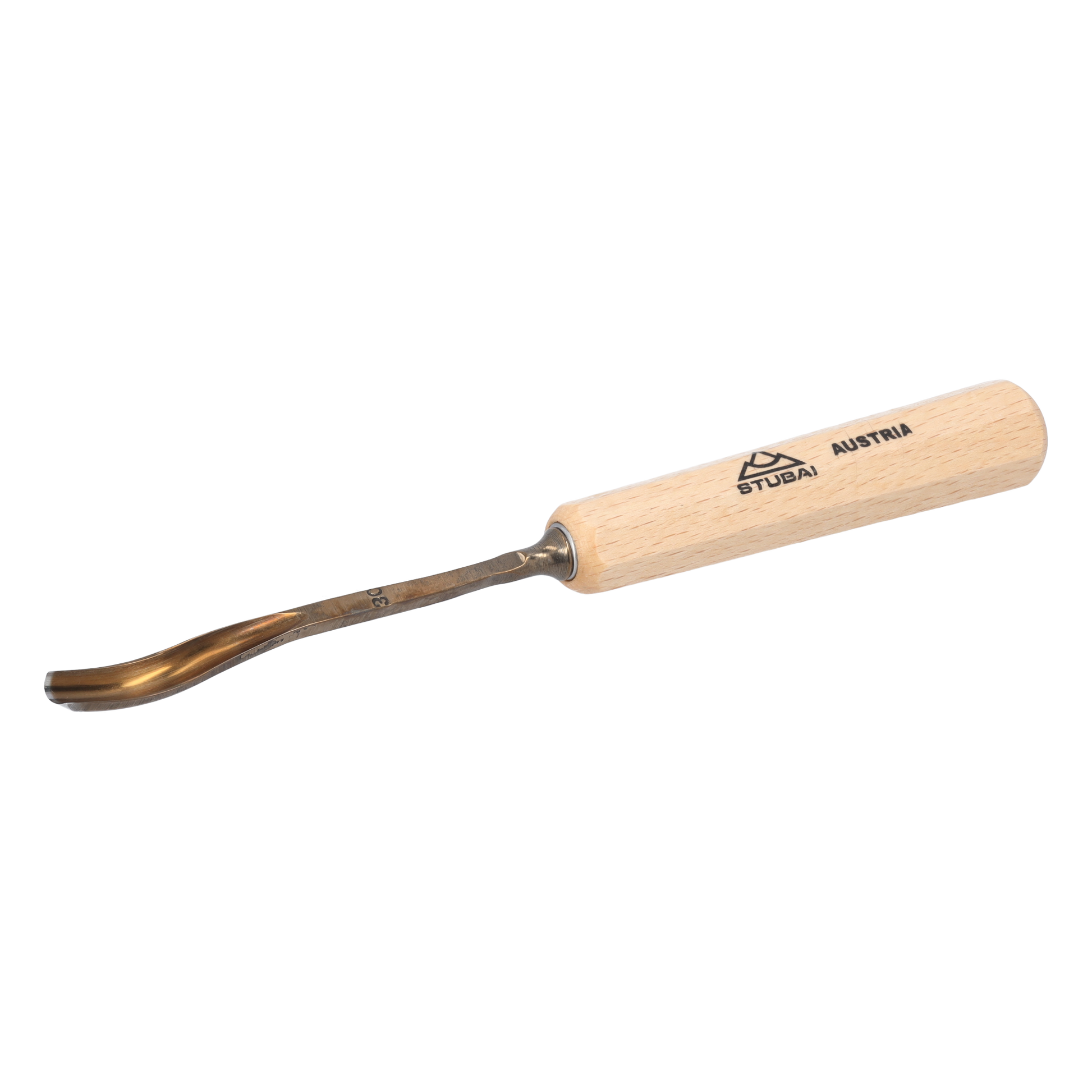 STUBAI Stemmeisen Stechbeitel Serie 52 - Form 30 | Gekröpftes Hohleisen 6 mm, mit Holzgriff, für Figurenarbeiten, Darstellung von welligem Haar und Wasser, zur präzisen Bearbeitung von Holz