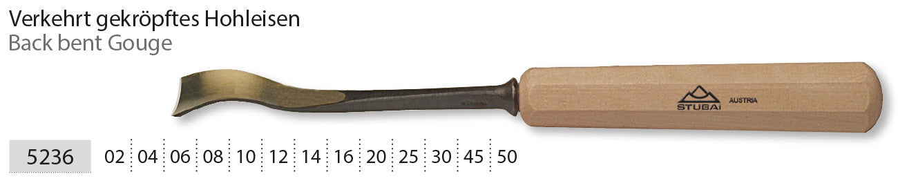 STUBAI Stemmeisen Stechbeitel Serie 52 - Form 36 | Verkehrt gekröpftes Hohleisen 8 mm, mit Holzgriff, für Figurenarbeiten, zur präzisen Bearbeitung von Holz, für Schreiner Tischler