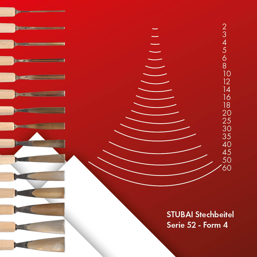 STUBAI Stemmeisen Stechbeitel Serie 52 - Form 5 | Gerades Hohleisen - 12 mm, mit Holzgriff, zum Vorstechen, für Anschlagarbeiten, Schrupparbeiten, Rosetten, zur Bearbeitung von Holz