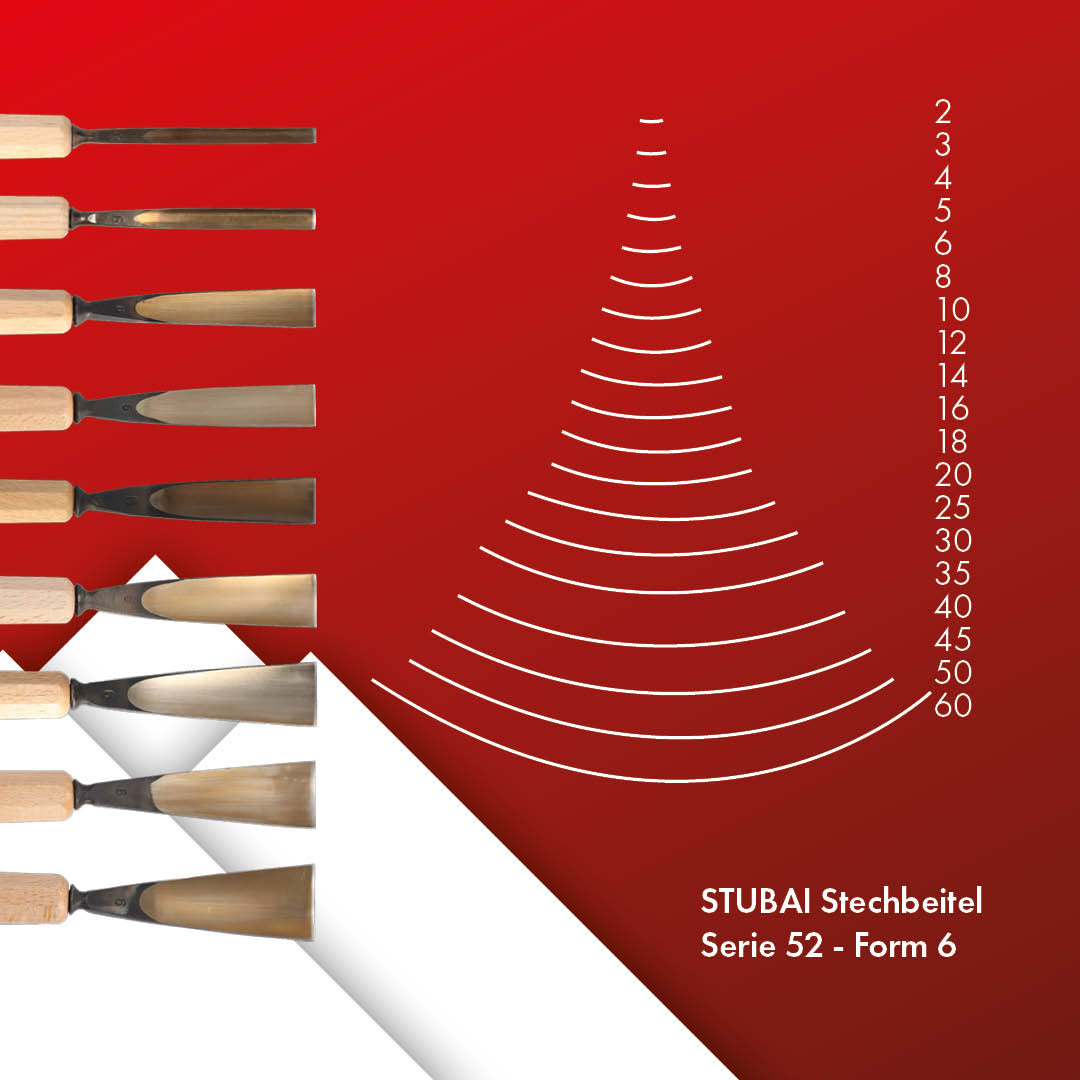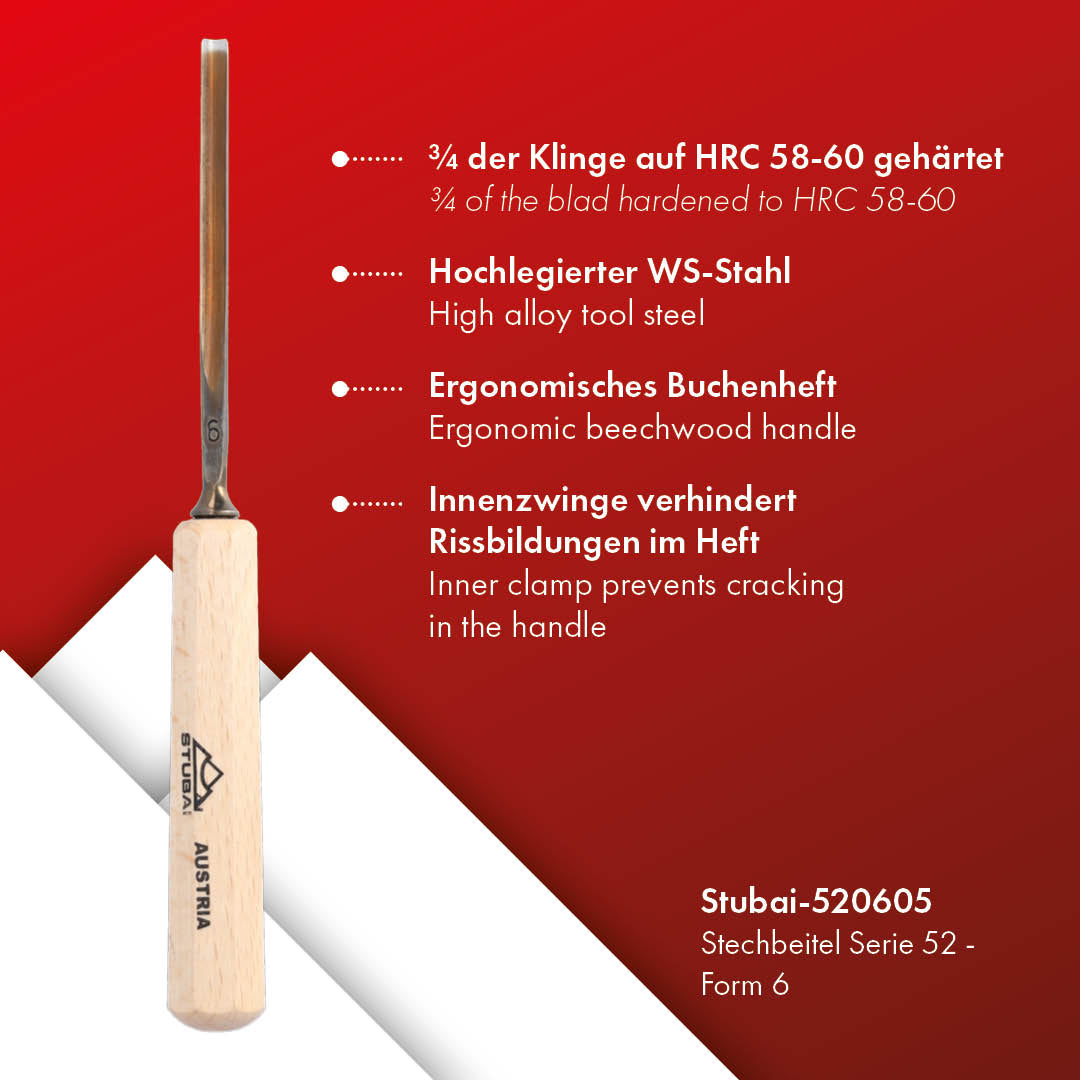 STUBAI Stemmeisen Stechbeitel Serie 52 - Form 6 | Gerades Hohleisen - 5 mm, mit Holzgriff, für Figurenarbeiten, zur präzisen Bearbeitung von Holz, hochwertiges Werkzeug für Schreiner Tischler