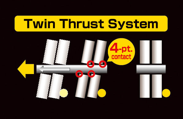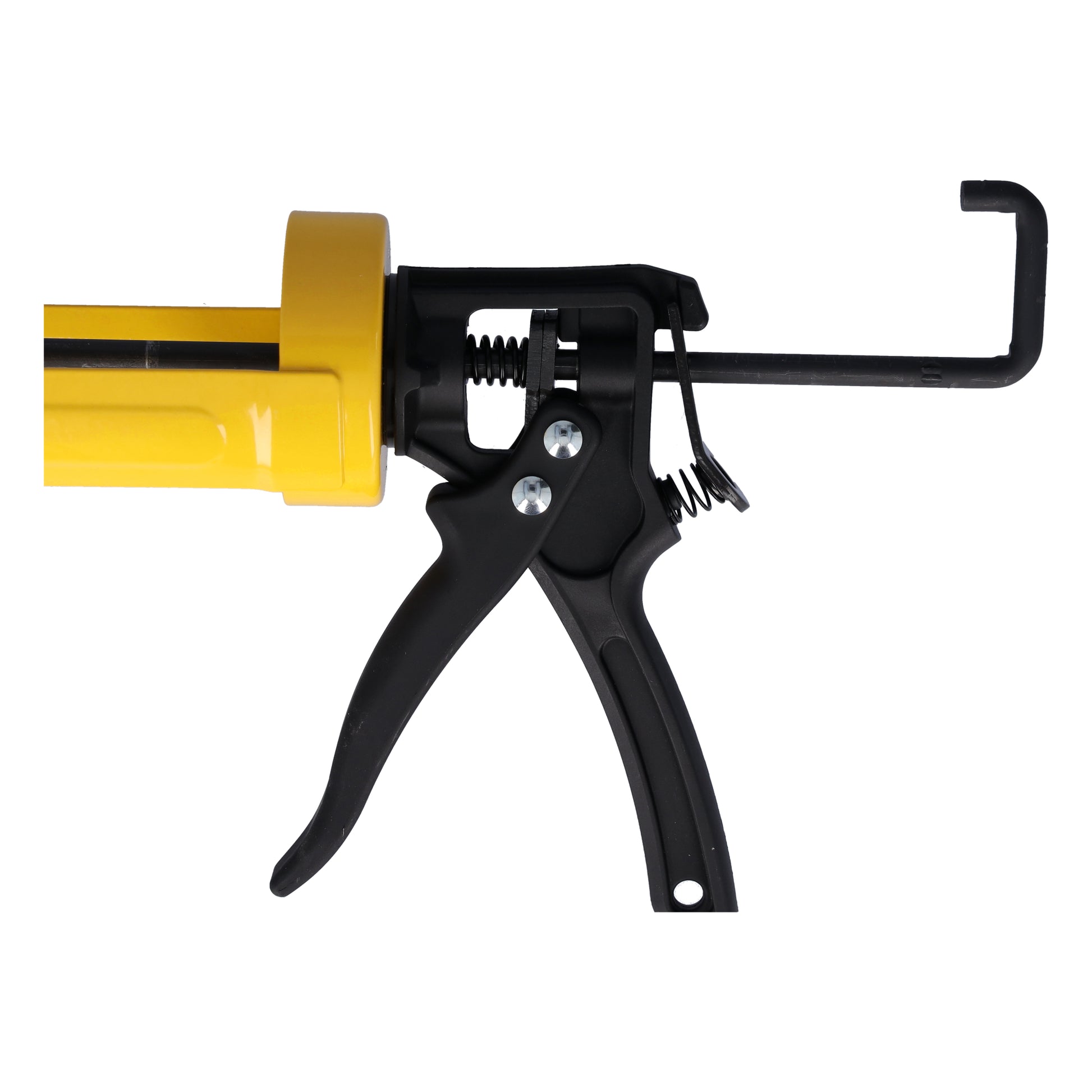 Extragrosse Kartuschenpresse für 900ml Kartuschen. Kraftvolles TWIN THRUST System. 360° Rotationstrommel. Automatische Unterbrechung des Materialflusses durch AUTO FLOW STOP.