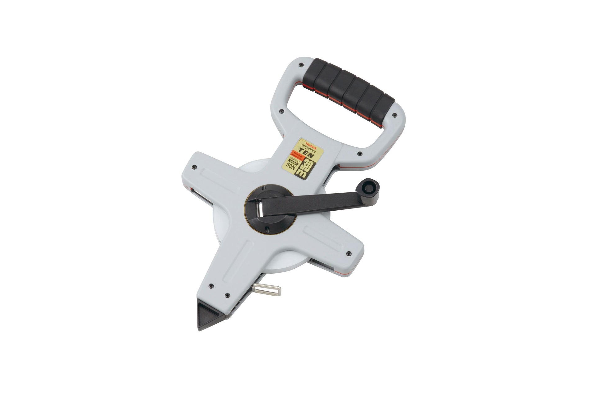 Leichtgängiges und zuverlässiges Stahl-Bandmass auf robustem Drehkreuz. Für präzises Messen grosser Distanzen.Das harte Nylon-Coating auf der Oberseite des Polyestergewebes schützt das Band vor Rost, macht es kratzfest und verbessert den Bandauszug.