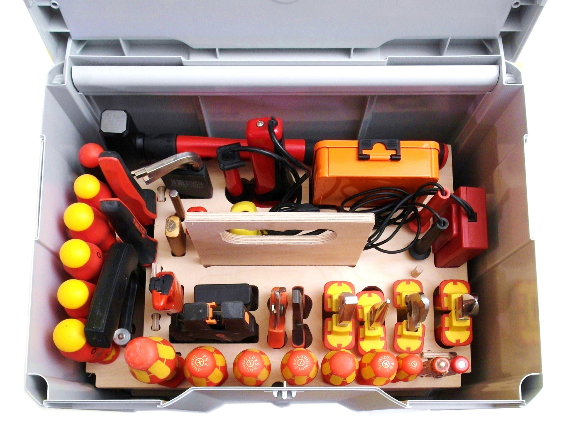 Spezial-Trägerset Elektriker aus Buchen-Multiplex für T-Loc IV, V, M 337 & M 437 | Strukturierte Werkzeugaufnahme | passend für System Systainer Festool / Tanos Systainer³