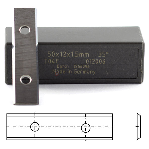 T10MG ist sehr gut geeignet für Hart- und Weichholz, jedoch nur akzeptabel geeignet für MDF sowie Spanplatten weniger geeignet für HDF. - Technische Details: Binder 10 % | Härte 1650 HV10 | Biegebruchfestigkeit 3600 N/mm² | Zähigkeit 9,4 - Hauptanwendung: 45°-Wendeschneidplatten und Hobelkopfplatten
