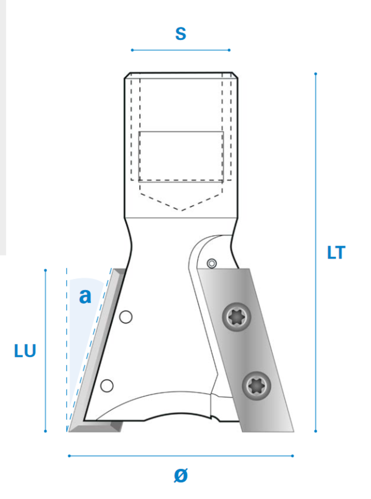 Zinkenfräser 15°mit Wendemesser für Arunda® System - 15° Schneide 2, Hartmetall Ø 40 - Rechts - 31,5 - 65,5 - M12x1